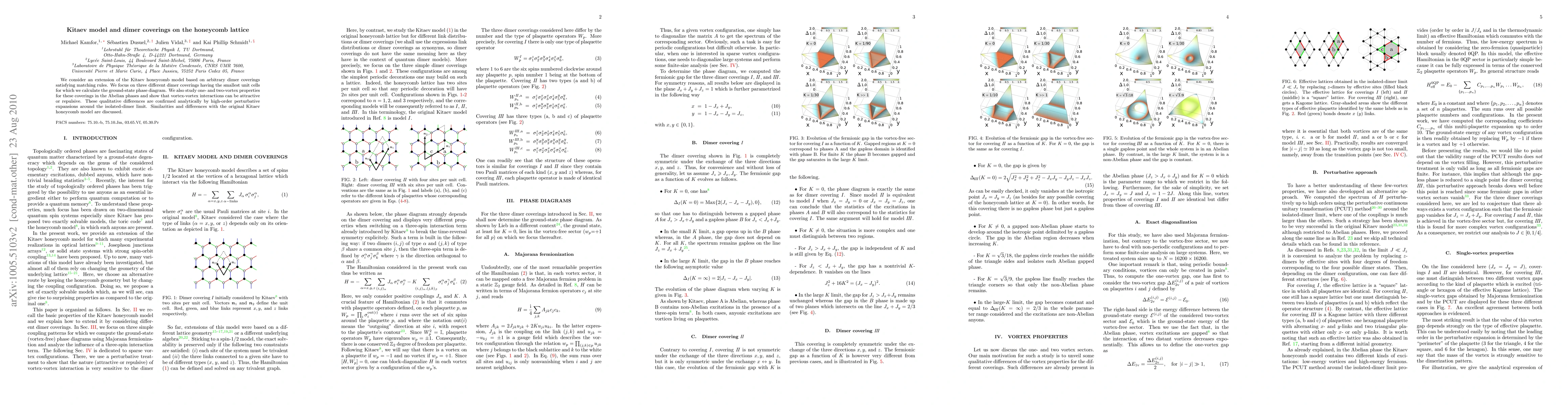 This paper extends the Kitaev honeycomb model by incorporating arbitrary dimer coverings, calculating the ground-state phase diagram for three minimal unit cell coverings, and analyzing vortex interactions which can be either attractive or repulsive, with comparisons to the original Kitaev model. Analytical perturbative expansions validate these findings.