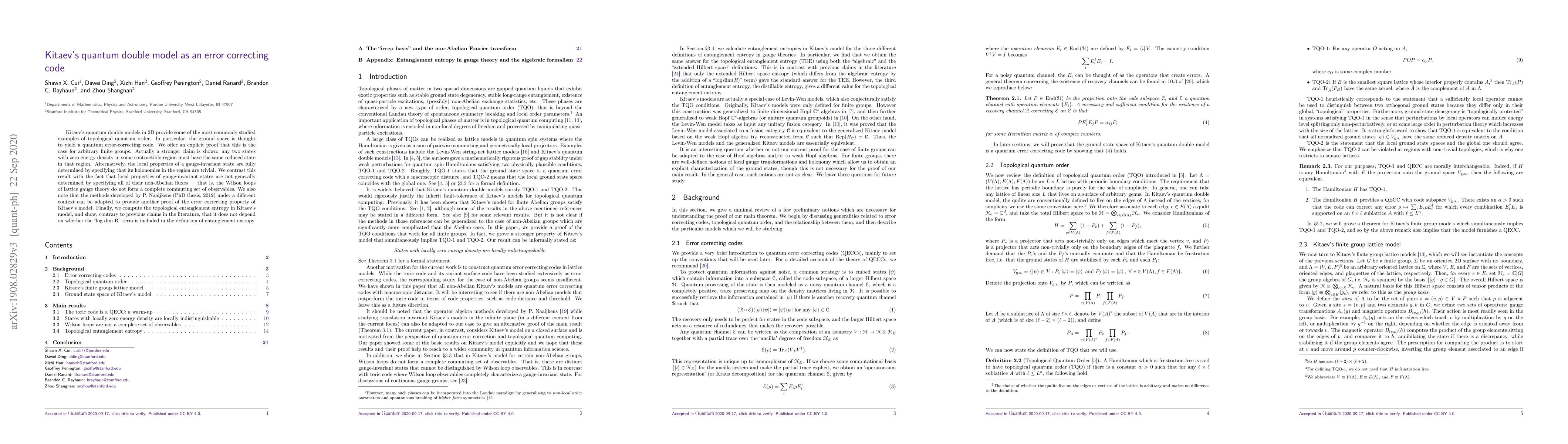 This paper proves that Kitaev's quantum double models serve as quantum error-correcting codes for arbitrary finite groups, showing that any two states with trivial holonomies in a contractible region are equivalent. It contrasts this with the insufficiency of non-Abelian fluxes for determining local properties.