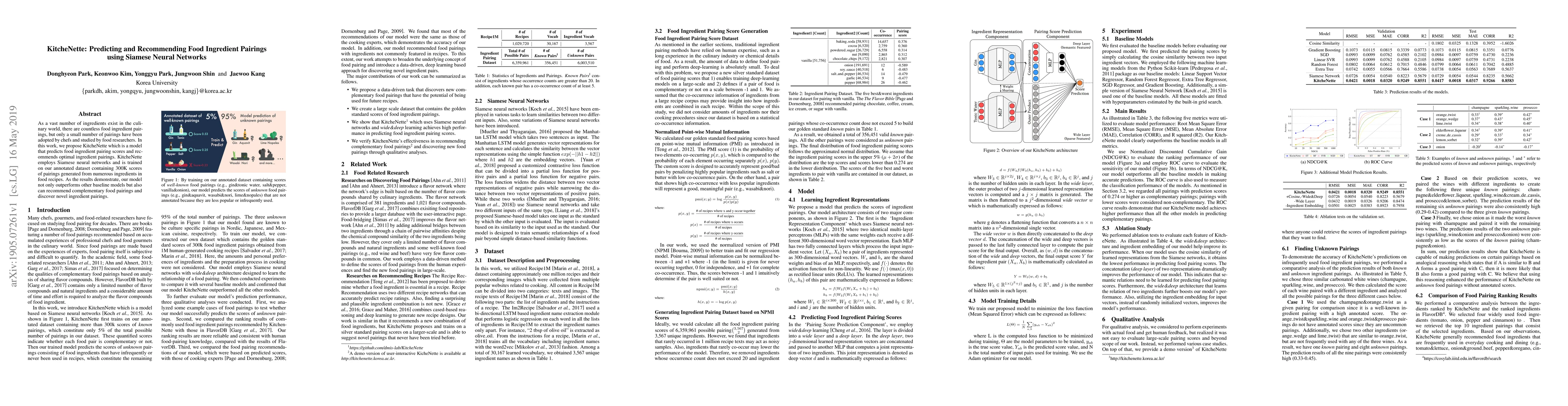 This research introduced KitchenNet, a deep learning-based model that predicts food pairing scores based on large amounts of recipe data.