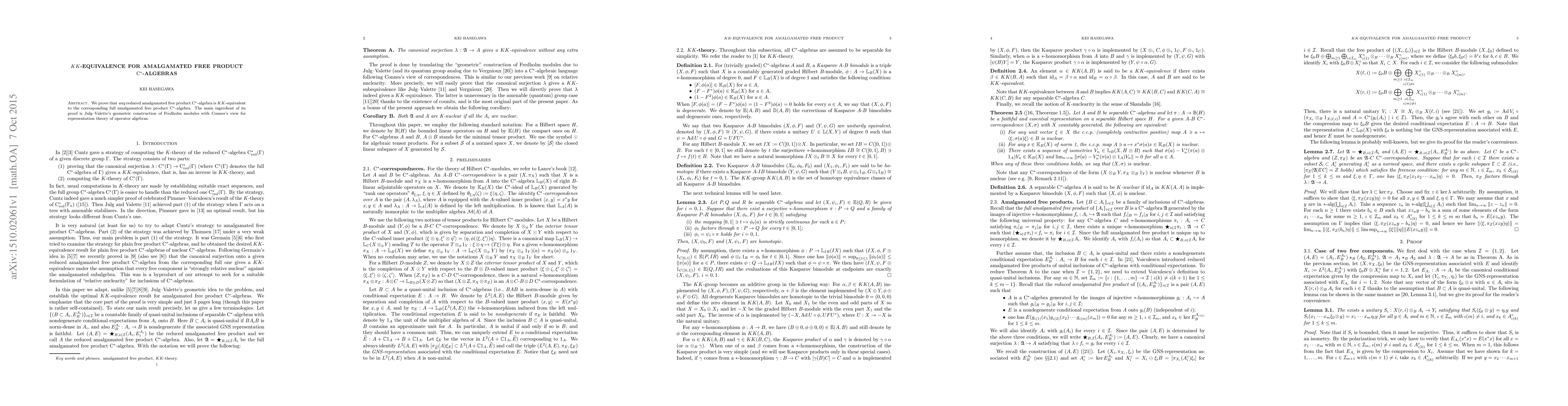 This paper proves that any reduced amalgamated free product C*-algebra is KK-equivalent to its full counterpart, utilizing Julg-Valette's geometric construction of Fredholm modules and Connes's representation theory of operator algebras.
