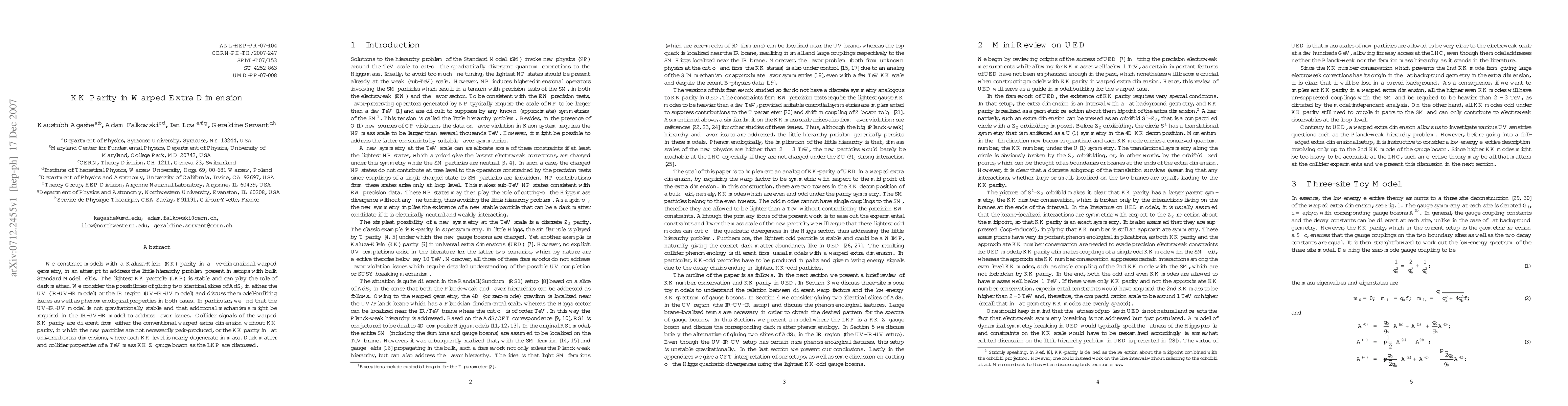 This paper constructs models with Kaluza-Klein (KK) parity in a five-dimensional warped geometry to address the little hierarchy problem, proposing the lightest KK particle as stable dark matter. It compares UV-IR-UV and IR-UV-IR models, finding the former requires additional mechanisms to address flavor issues and the latter is gravitationally unstable.