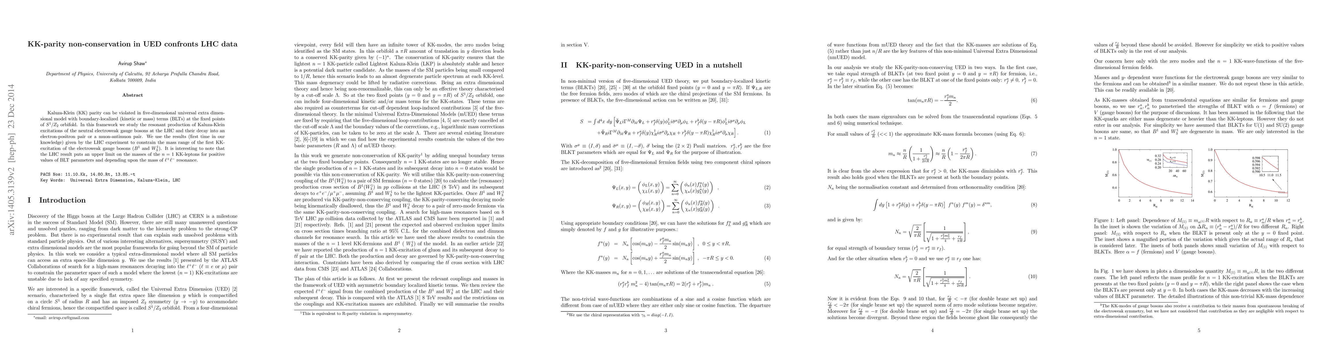 Researchers investigate the production of Kaluza-Klein particles at the LHC and their decay into electron-positron pairs or muon-antimuon pairs, finding an upper limit on the masses of these particles based on LHC data.