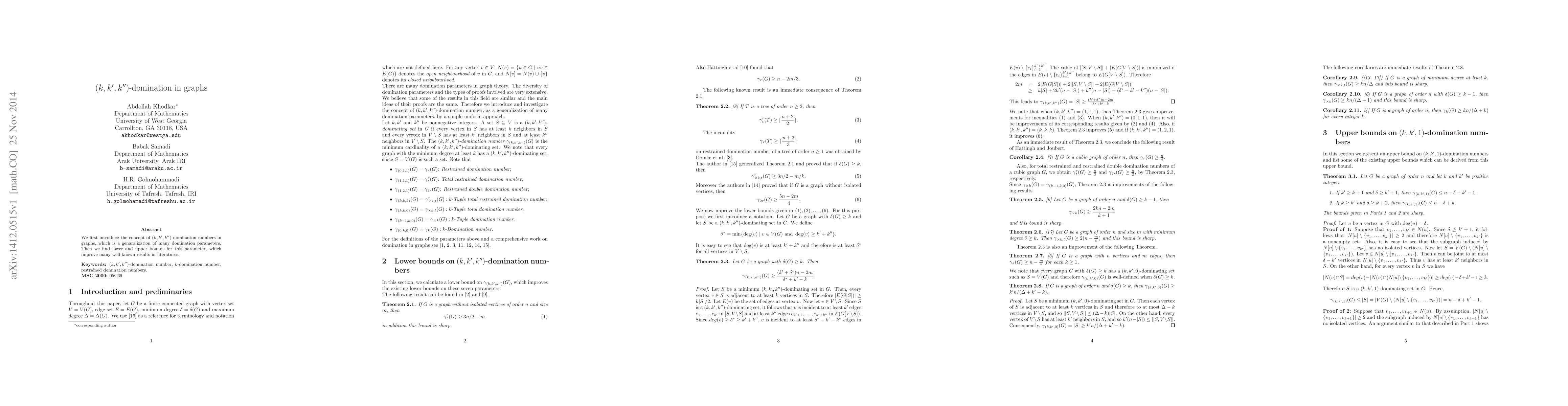 This paper introduces (k,k',k'')-domination numbers in graphs and finds new bounds for this parameter, improving existing results, with implications for domination parameters in graph theory.