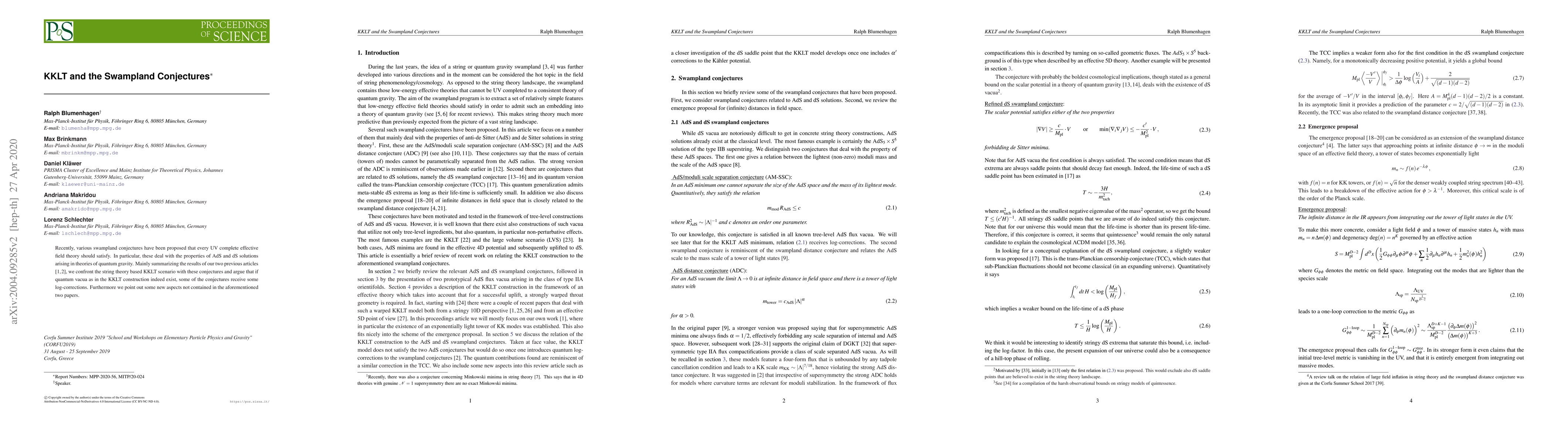 Recently, various swampland conjectures have been proposed that every UV complete effective field theory should satisfy. In particular, these deal with the properties of AdS and dS solutions arising in theories of quantum gravity. Mainly summarizing the results of our two previous articles arXiv:1902.07724 and arXiv:1910.10185, we confront the string theory based KKLT scenario with these conjectures and argue that if quantum vacua as in the KKLT construction indeed exist, some of the conjectures receive some log-corrections. Furthermore we point out some new aspects not contained in the aforementioned two papers.