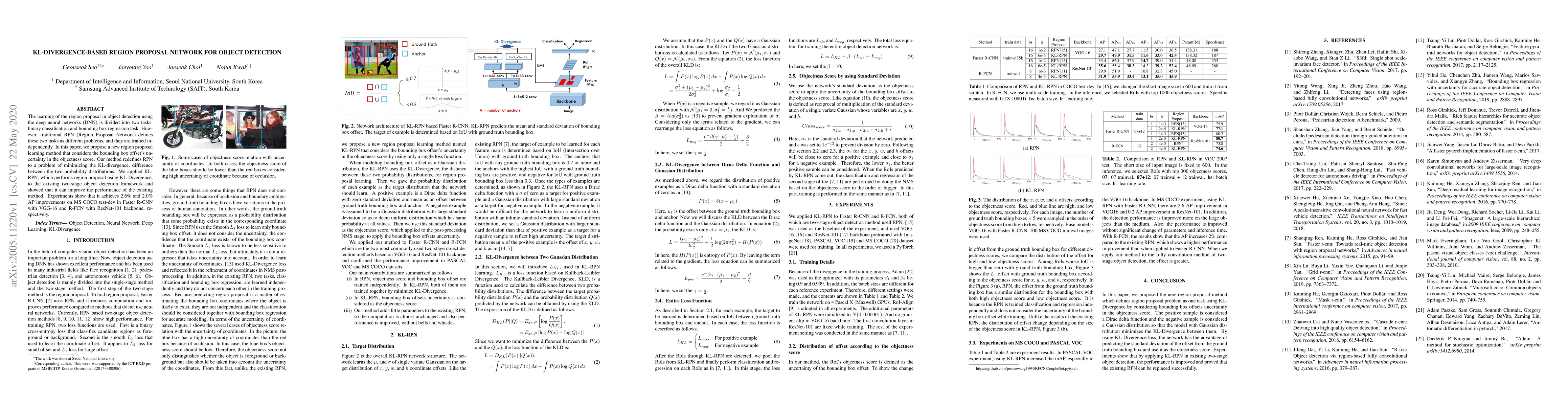 Proposed a new region proposal method using KL-Divergence to consider bounding box offsets' uncertainty in the objectness score.