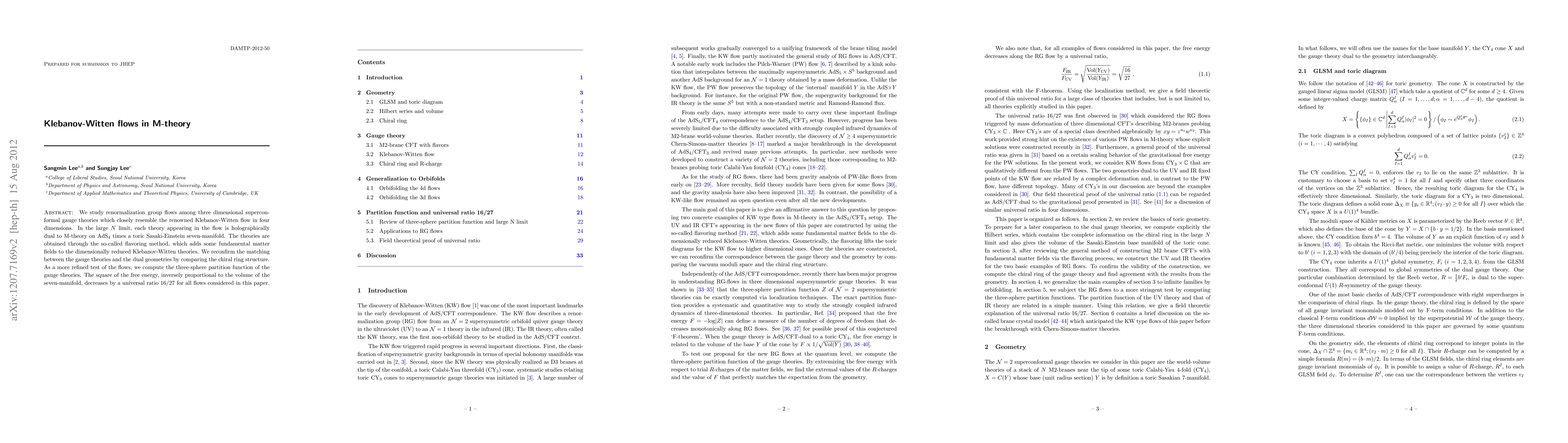 This paper investigates M-theory renormalization group flows in three-dimensional superconformal gauge theories, which mirror the Klebanov-Witten flow in four dimensions. The study confirms the holographic duality between these theories and M-theory on AdS4 times a toric Sasaki-Einstein seven-manifold, using the flavoring method and comparing the chiral ring structure and three-sphere partition function.
