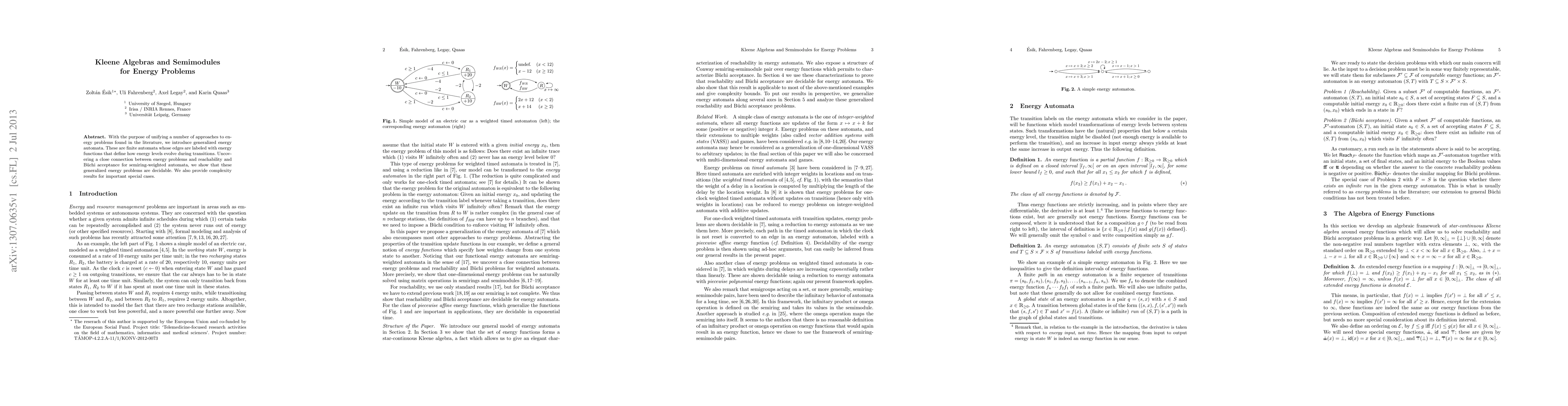 With the purpose of unifying a number of approaches to energy problems found in the literature, we introduce generalized energy automata. These are finite automata whose edges are labeled with energy functions that define how energy levels evolve during transitions. Uncovering a close connection between energy problems and reachability and B\"uchi acceptance for semiring-weighted automata, we show that these generalized energy problems are decidable. We also provide complexity results for important special cases.