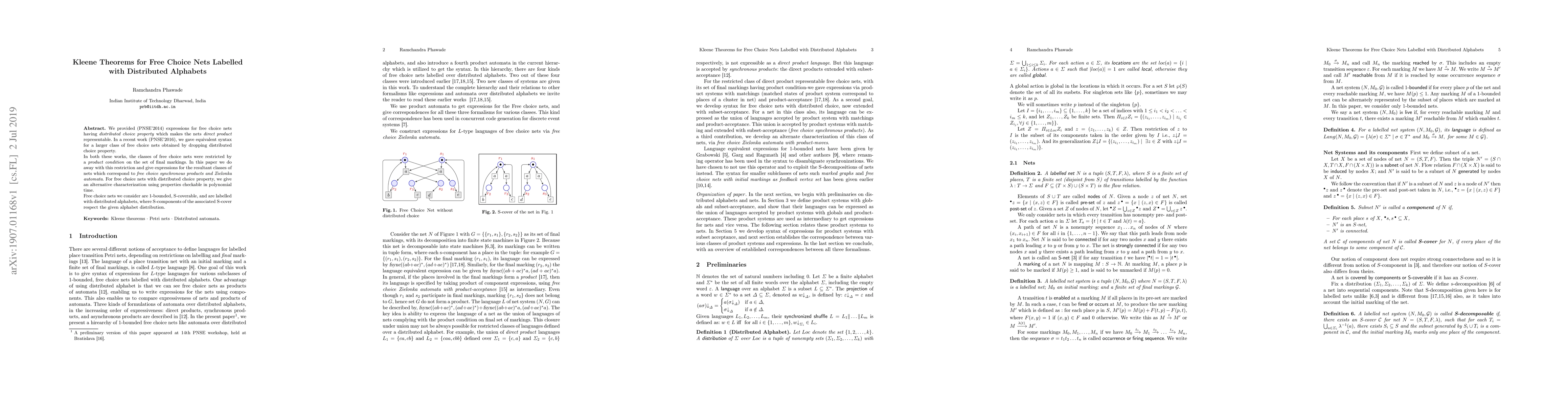 We provided (PNSE'2014) expressions for free choice nets having "distributed choice property" which makes the nets "direct product" representable. In a recent work (PNSE'2016), we gave equivalent syntax for a larger class of free choice nets obtained by dropping distributed choice property. In both these works, the classes of free choice nets were restricted by a "product condition" on the set of final markings. In this paper we do away with this restriction and give expressions for the resultant classes of nets which correspond to "free choice synchronous products and Zielonka automata". For free choice nets with distributed choice property, we give an alternative characterization using properties checkable in polynomial time. Free choice nets we consider are 1-bounded, S-coverable, and are labelled with distributed alphabets, where S-components of the associated S-cover respect the given alphabet distribution.