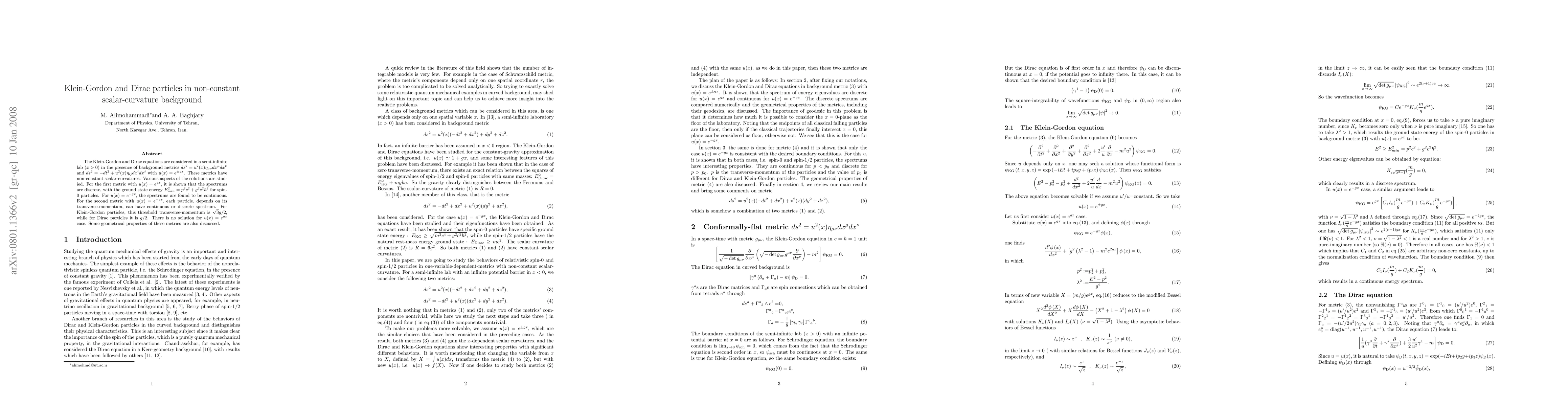 This paper examines the Klein-Gordon and Dirac equations in semi-infinite lab backgrounds with non-constant scalar-curvature metrics. The study reveals discrete spectra for the metric with $u(x)=e^{gx}$ and continuous spectra for $u(x)=e^{-gx}$, with specific thresholds for transverse-momentum determining spectrum type for Dirac particles.