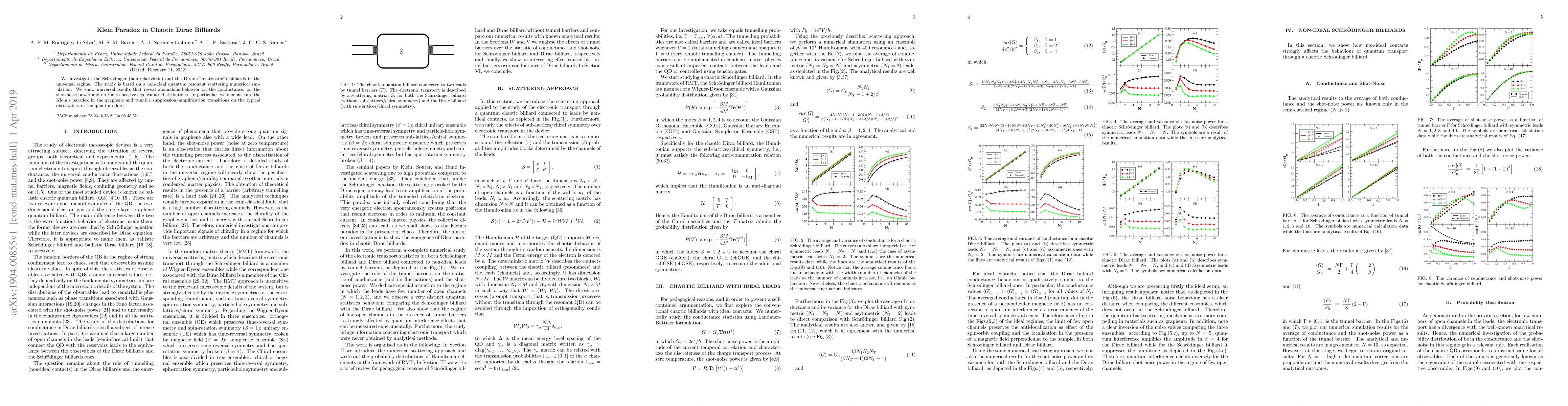 Researchers investigate chaotic behavior in quantum systems, revealing anomalies in conductance, shot-noise power, and eigenvalue distributions, demonstrating Klein's paradox in graphene and tunable quantum dots.