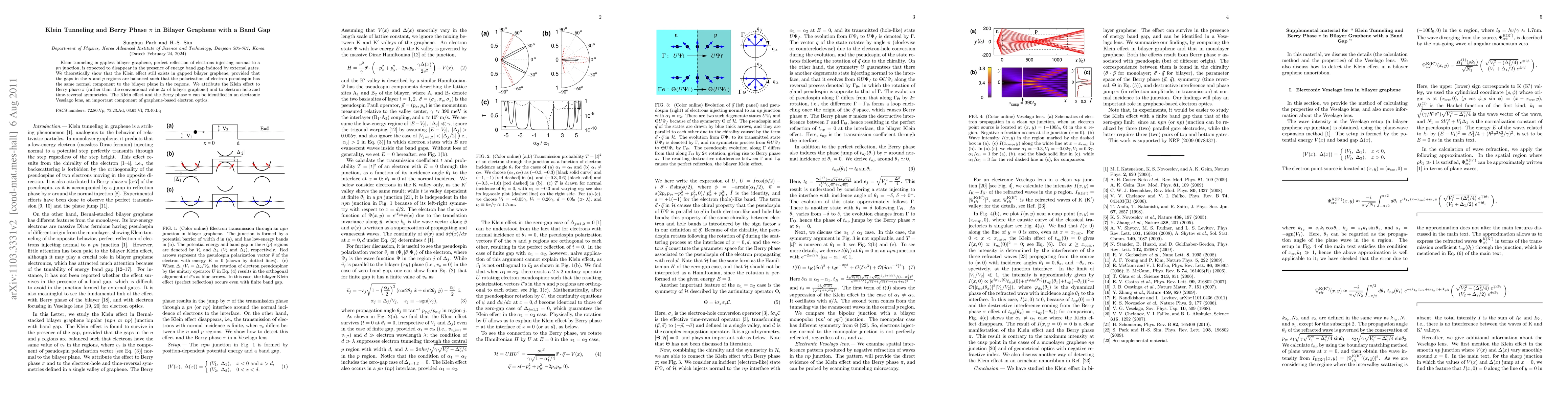 This research demonstrates that Klein tunneling persists in gapped bilayer graphene when band gaps in n and p regions are balanced, attributed to a Berry phase $\pi$. This effect can be utilized in graphene-based electronic devices like a Veselago lens.