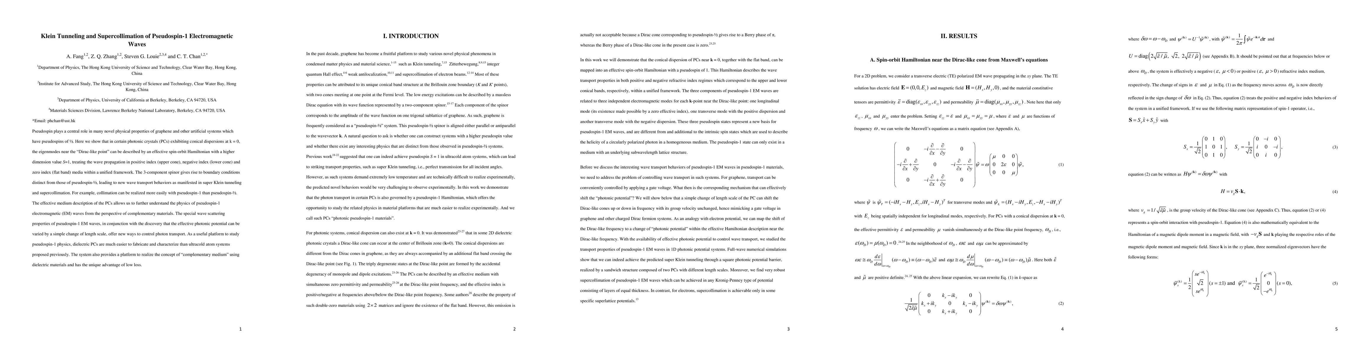 This paper explores the novel wave transport behaviors of pseudospin-1 electromagnetic waves in photonic crystals, demonstrating Klein tunneling and supercollimation. It reveals that pseudospin-1 eigenmodes exhibit distinct boundary conditions and more efficient collimation compared to pseudospin-1/2, potentially offering new methods for photon transport control.
