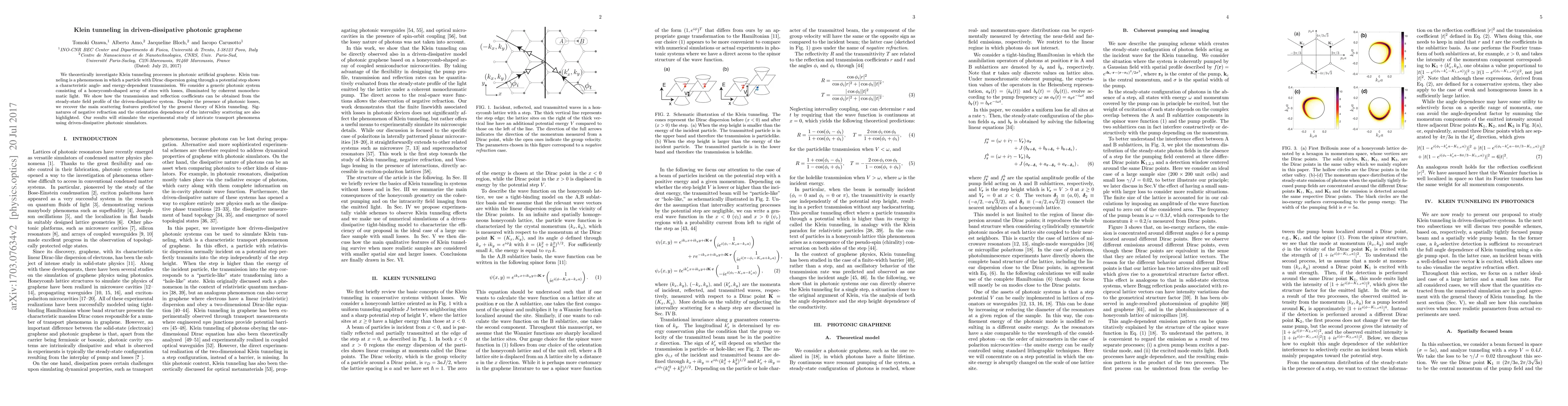 This paper explores Klein tunneling in photonic artificial graphene, demonstrating how the phenomenon can still occur despite photonic losses. The study highlights signatures of negative refraction and orientation-dependent scattering in a driven-dissipative photonic system, encouraging further experimental investigations in this area.