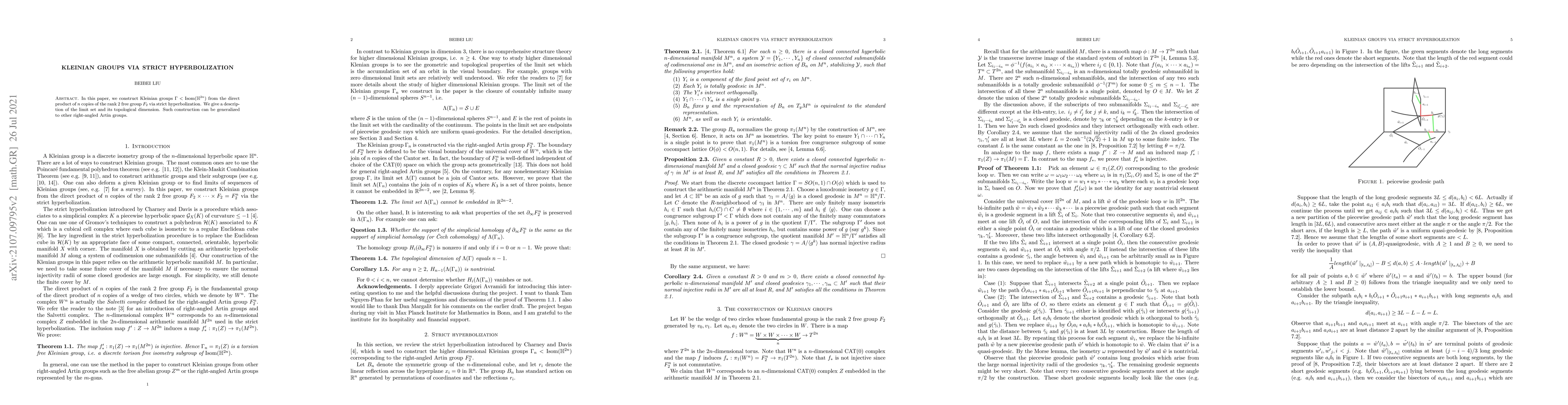 In this paper, we construct Kleinian groups $\Gamma<\mathrm{Isom}(\mathbb{H}^{2n})$ from the direct product of $n$ copies of the rank 2 free group $F_2$ via strict hyperbolization. We give a description of the limit set and its topological dimension. Such construction can be generalized to other right-angled Artin groups.