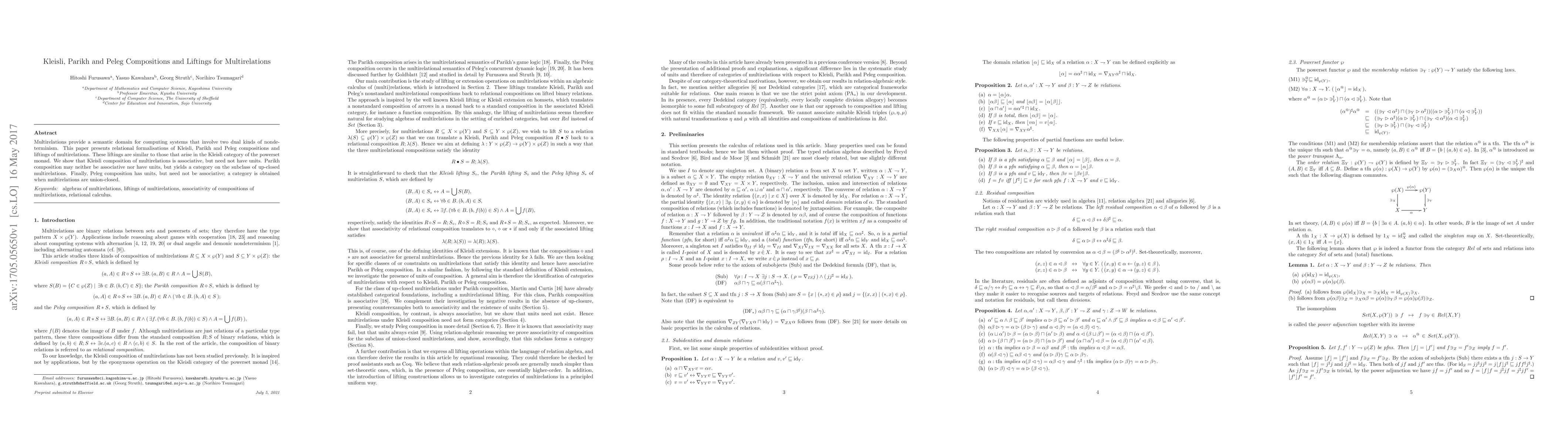 The paper introduces relational definitions for Kleisli and Peleg liftings, extending the understanding of multirelation compositions.
