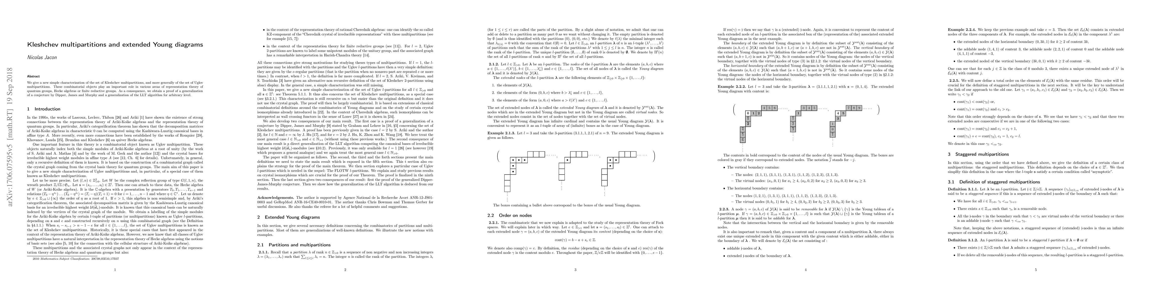 Researchers provide a new characterization of Kleshchev multipartitions, a combinatorial object crucial in representation theory, leading to a proof of a generalized conjecture and improved LLT algorithm.