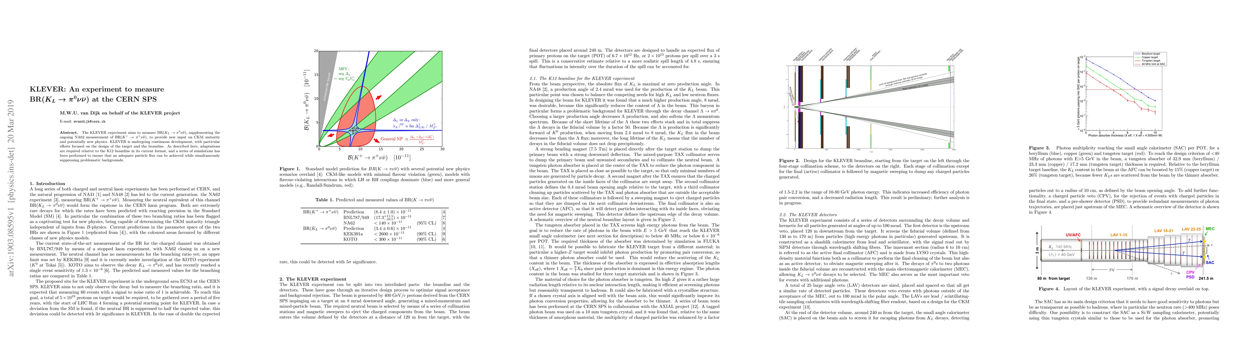 The KLEVER experiment seeks to measure the branching ratio ${\rm BR}(K_L \to \pi^0 \nu \overline{\nu})$ to enhance understanding of CKM unitarity and explore potential new physics, with ongoing developments focusing on the target and beamline design to optimize particle flux and minimize background noise.