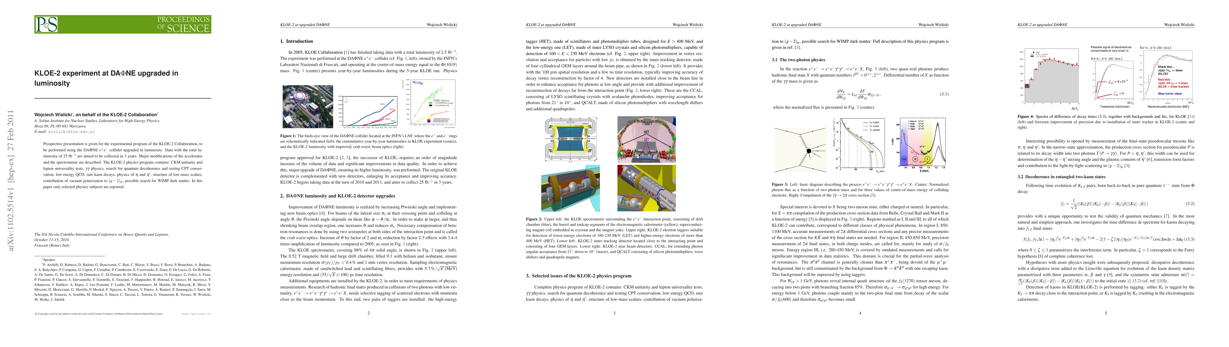 The KLOE-2 Collaboration aims to collect 25 fb$^{-1}$ of data in 3 years using the upgraded luminosity DA$\Phi$NE $e^+e^-$ collider, focusing on CKM unitarity, $\gamma\gamma$ physics, and searches for quantum decoherence and WIMP dark matter. Major accelerator and spectrometer modifications support this ambitious program.