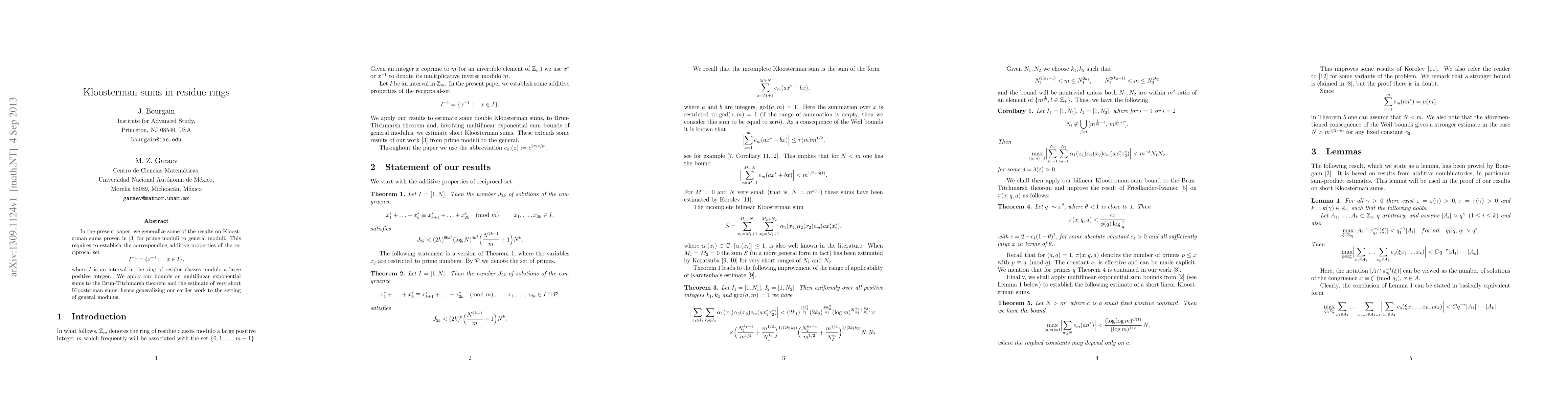 This paper generalizes results on Kloosterman sums from prime to general moduli by establishing additive properties of reciprocal sets in residue rings, and applies these findings to extend bounds on multilinear exponential sums and improve estimates for very short Kloosterman sums.
