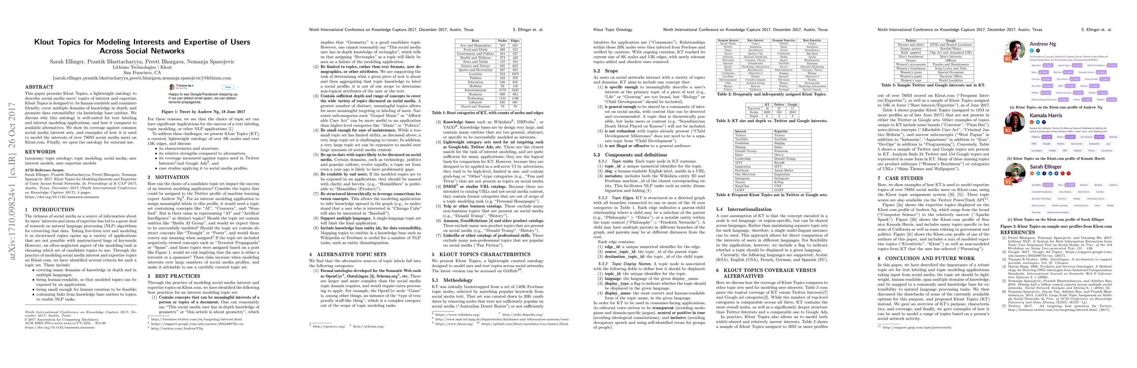 This paper introduces Klout Topics, a human-readable ontology for modeling users' interests and expertise across social networks, emphasizing its depth in multiple knowledge domains and extensibility. It demonstrates its application in text labeling and interest modeling for over 780M users.