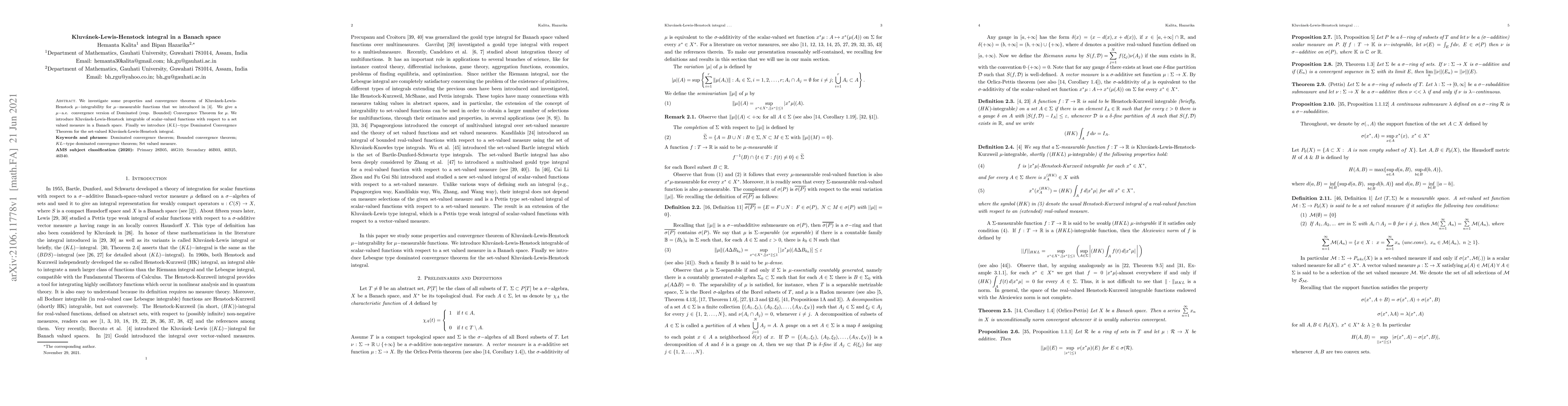 We investigate some properties and convergence theorem of Kluv\'{a}nek-Lewis-Henstock $\m-$integrability for $\m-$measurable functions that we introduced in \cite{ABH}. We give a $\m-$a.e. convergence version of Dominated (resp. Bounded) Convergence Theorem for $\m.$ We introduce Kluv\'{a}nek-Lewis-Henstock integrable of scalar-valued functions with respect to a set valued measure in a Banach space. Finally we introduce $(KL)-$type Dominated Convergence Theorem for the set-valued Kluv\'{a}nek-Lewis-Henstock integral.