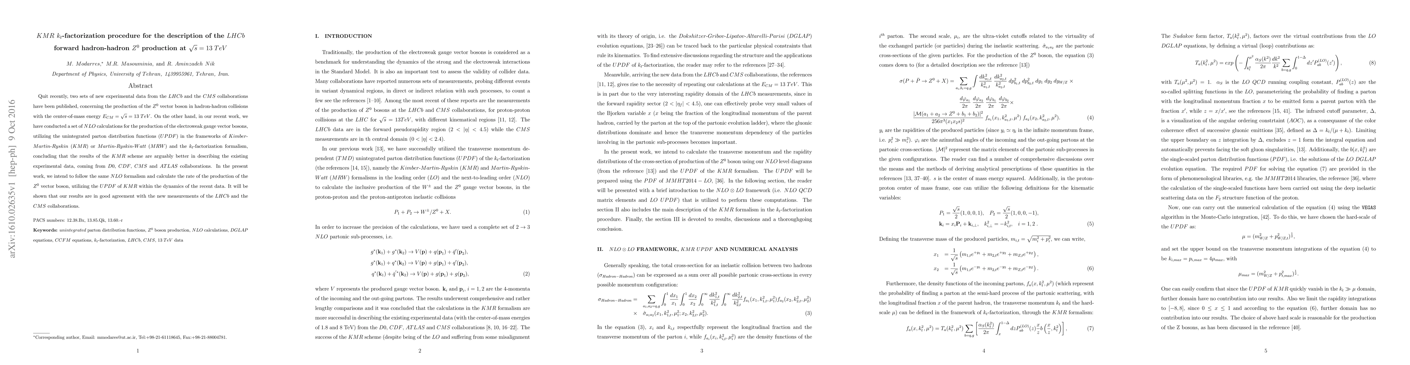Quit recently, two sets of new experimental data from the $LHCb$ and the $CMS$ collaborations have been published, concerning the production of the $Z^0$ vector boson in hadron-hadron collisions with the center-of-mass energy $E_{CM}= \sqrt{s}=13\;TeV$. On the other hand, in our recent work, we have conducted a set of $NLO$ calculations for the production of the electroweak gauge vector bosons, utilizing the unintegrated parton distribution functions ($UPDF$) in the frameworks of $Kimber$-$Martin$-$Ryskin$ ($KMR$) or $Martin$-$Ryskin$-$Watt$ ($MRW$) and the $k_t$-factorization formalism, concluding that the results of the $KMR$ scheme are arguably better in describing the existing experimental data, coming from $D0$, $CDF$, $CMS$ and $ATLAS$ collaborations. In the present work, we intend to follow the same $NLO$ formalism and calculate the rate of the production of the $Z^0$ vector boson, utilizing the $UPDF$ of $KMR$ within the dynamics of the recent data. It will be shown that our results are in good agreement with the new measurements of the $LHCb$ and the $CMS$ collaborations.