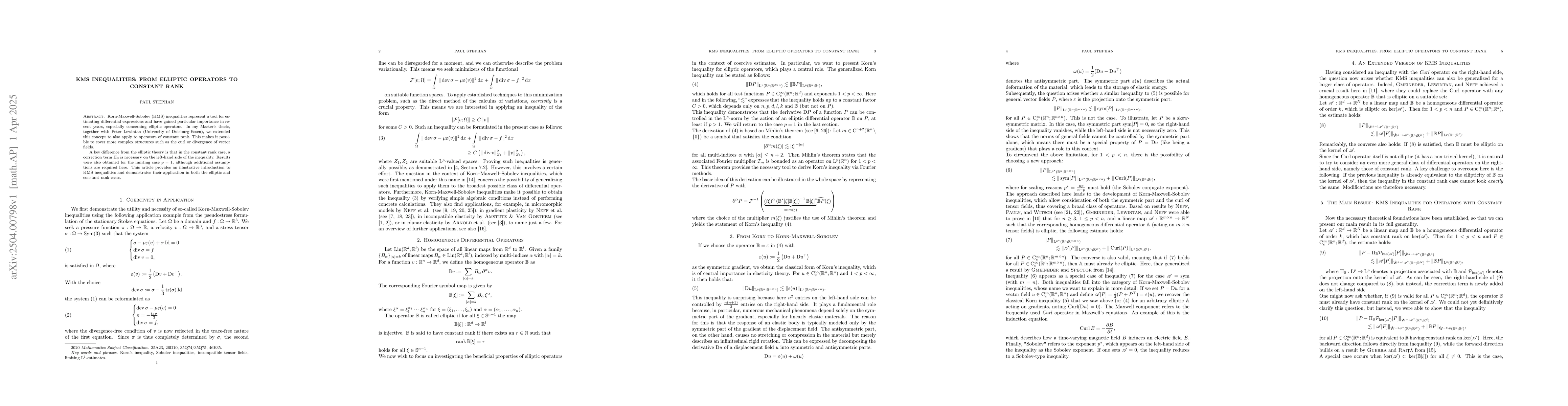 Korn-Maxwell-Sobolev (KMS) inequalities represent a tool for estimating differential expressions and have gained particular importance in recent years, especially concerning elliptic operators. In my Master's thesis, together with Peter Lewintan (University of Duisburg-Essen), we extended this concept to also apply to operators of constant rank. This makes it possible to cover more complex structures such as the curl or divergence of vector fields. A key difference from the elliptic theory is that in the constant rank case, a correction term $\Pi_\mathbb{B}$ is necessary on the left-hand side of the inequality. Results were also obtained for the limiting case $p=1$, although additional assumptions are required here. This article provides an illustrative introduction to KMS inequalities and demonstrates their application in both the elliptic and constant rank cases.