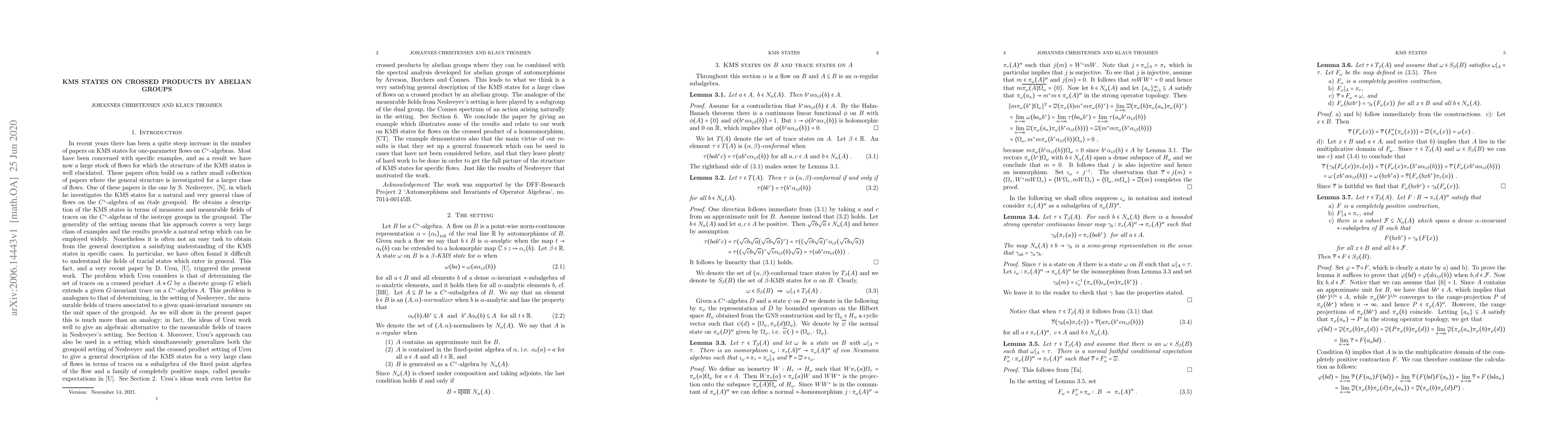This paper explores KMS states for flows with fixed point algebras meeting a specific regularity condition, focusing on crossed products by discrete abelian groups and combining these methods with spectral analysis for abelian automorphism groups.