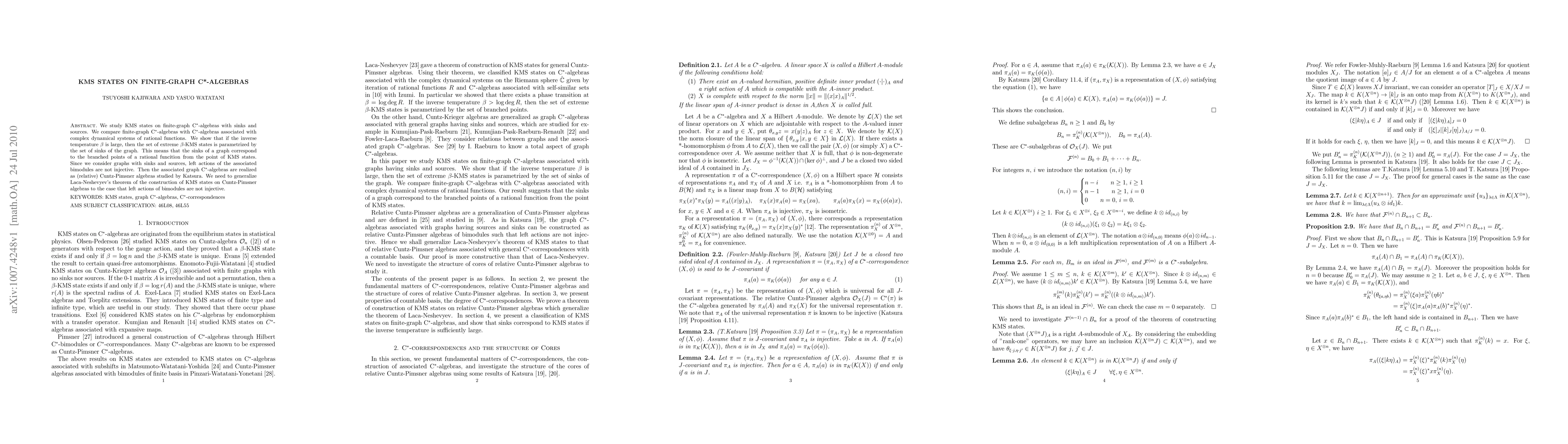 This paper investigates KMS states on finite-graph C*-algebras, especially those with sinks and sources, and compares them to C*-algebras from rational function dynamical systems. It finds that large inverse temperatures lead to a correspondence between graph sinks and branched points of rational functions, and it generalizes a theorem on KMS states for relative Cuntz-Pimsner algebras to accommodate non-injective bimodule actions.