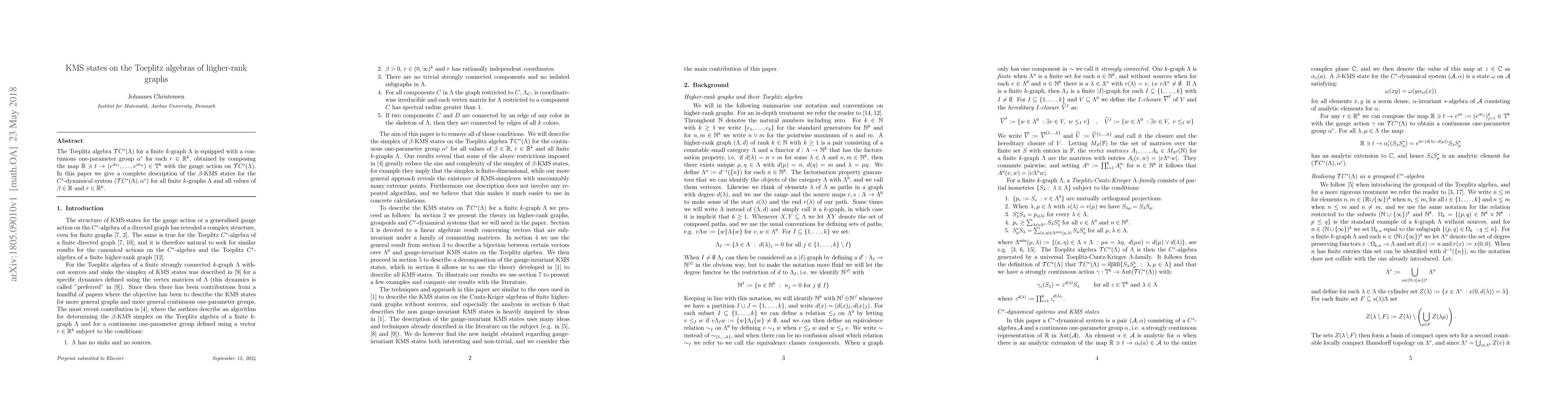 This paper provides a comprehensive description of the $\beta$-KMS states for Toeplitz algebras $\mathcal{T}C^{*}(\Lambda)$ associated with finite $k$-graphs $\Lambda$, under the continuous one-parameter group $\alpha^{r}$, for all $\beta \in \mathbb{R}$ and $r\in \mathbb{R}^{k}$.