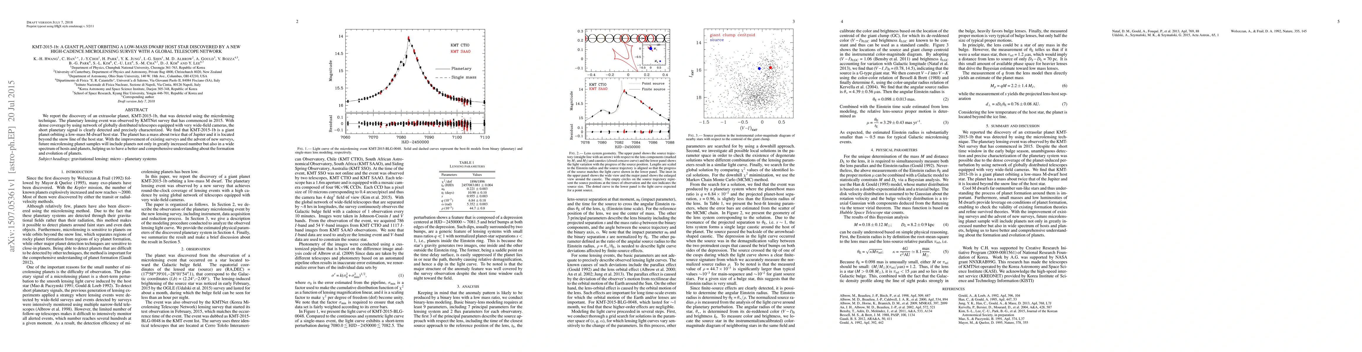 KMT-2015-1b is a giant planet, twice the mass of Jupiter, discovered via microlensing by KMTNet. It orbits a low-mass M-dwarf star beyond the snow line, highlighting the potential of future microlensing surveys to reveal diverse planetary systems.