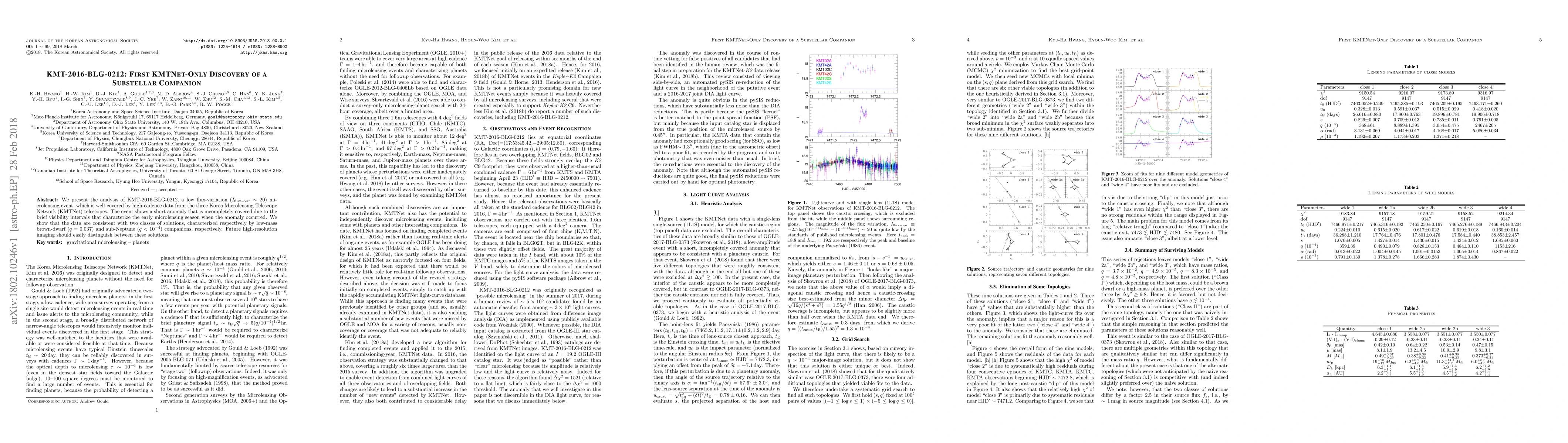 We present the analysis of KMT-2016-BLG-0212, a low flux-variation $(I_{\rm flux-var}\sim 20$) microlensing event, which is well-covered by high-cadence data from the three Korea Microlensing Telescope Network (KMTNet) telescopes. The event shows a short anomaly that is incompletely covered due to the brief visibility intervals that characterize the early microlensing season when the anomaly occurred. We show that the data are consistent with two classes of solutions, characterized respectively by low-mass brown-dwarf $(q=0.037)$ and sub-Neptune $(q<10^{-4})$ companions, respectively. Future high-resolution imaging should easily distinguish between these solutions.