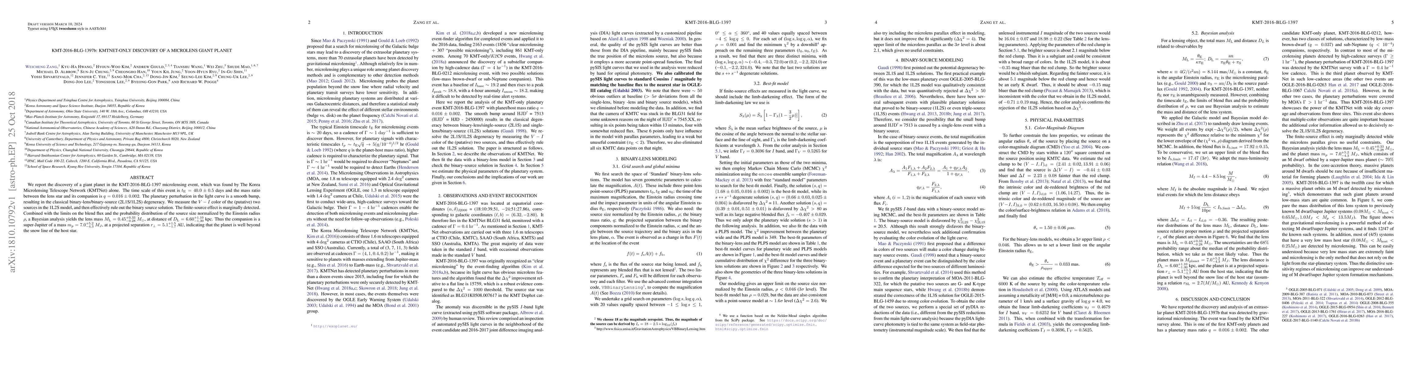 The Korea Microlensing Telescope Network (KMTNet) discovered a super-Jupiter, Kmt-2016-blg-1397b, with a mass of 7.0+5.2-4.3 M_J at a projected separation of 5.1+1.5-1.7 AU from its host star. This giant planet was found in the microlensing event KMT-2016-BLG-1397, and the host star's mass is estimated to be 0.45+0.33-0.28 M_sun, located 6.60+1.10-1.30 kpc away.