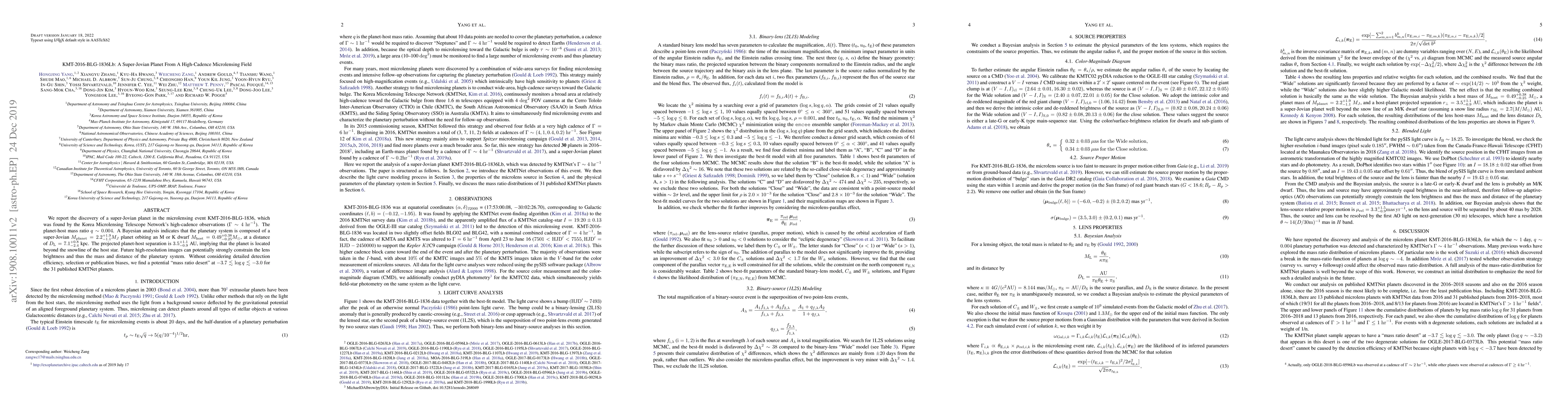 The Korea Microlensing Telescope Network discovered a super-Jovian planet, KMT-2016-BLG-1836Lb, with a mass ratio of 0.004, orbiting an M or K dwarf star. The planet's mass is estimated to be 2.2 Jupiter masses, located 7.1 kpc away with a projected separation of 3.5 AU from its host star.