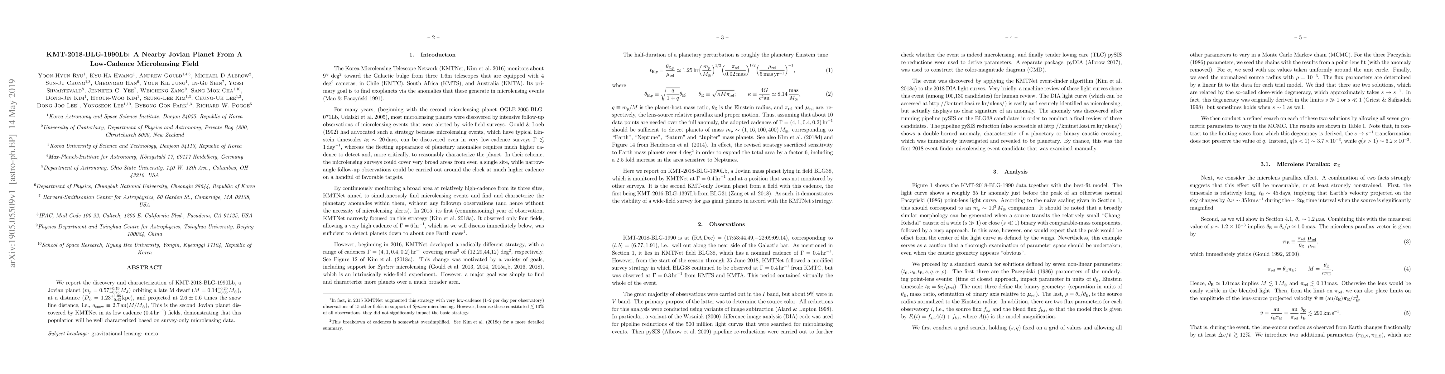 The paper reports the discovery of KMT-2018-BLG-1990Lb, a Jovian planet orbiting a late M dwarf, identified through microlensing. This planet, located at a distance of 1.23 kpc, is the second Jovian planet found by KMTNet, indicating the survey's potential for characterizing such planets.