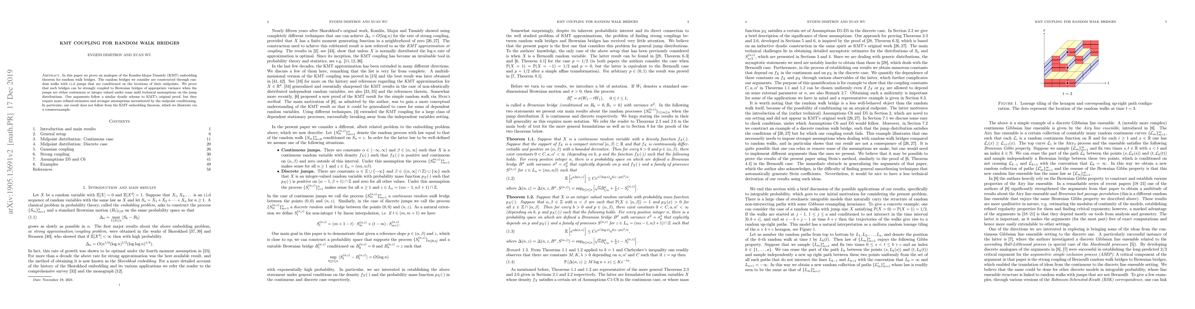 This paper establishes an analogue of the KMT embedding theorem for random walk bridges, showing that such bridges can be coupled to Brownian bridges under specific conditions on the jump distributions. Unlike the original KMT theorem, this result requires more refined estimates and stronger assumptions due to endpoint conditioning.