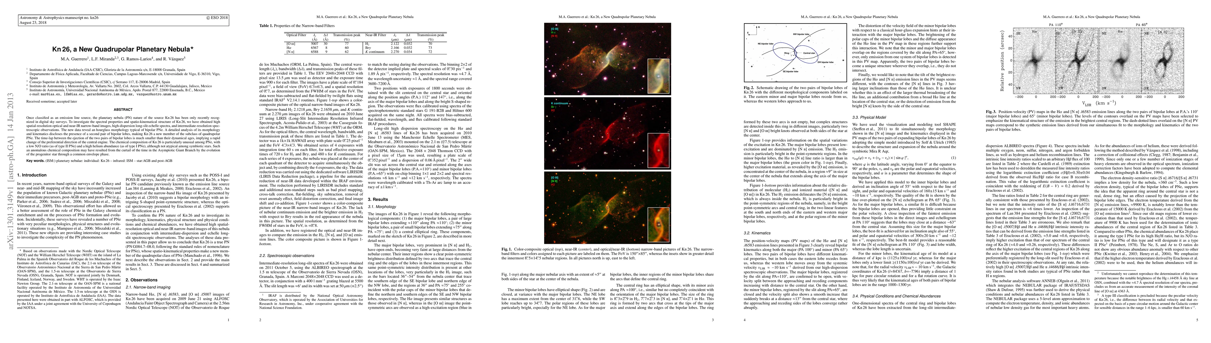 Once classified as an emission line source, the planetary nebula (PN) nature of the source Kn 26 has been only recently recognized in digital sky surveys. To investigate the spectral properties and spatio-kinematical structure of Kn 26, we have obtained high spatial-resolution optical and near-IR narrow-band images, high-dispersion long-slit echelle spectra, and intermediate-resolution spectroscopic observations. The new data reveal an hourglass morphology typical of bipolar PNe. A detailed analysis of its morphology and kinematics discloses the presence of a second pair of bipolar lobes, making Kn 26 a new member of the subclass of quadrupolar PNe. The time-lap between the ejection of the two pairs of bipolar lobes is much smaller than their dynamical ages, implying a rapid change of the preferential direction of the central engine. The chemical composition of Kn 26 is particularly unusual among PNe, with a low N/O ratio (as of type II PNe) and a high helium abundance (as of type I PNe), although not atypical among symbiotic stars. Such an anomalous chemical composition may have resulted from the curtail of the time in the Asymptotic Giant Branch by the evolution of the progenitor star through a common envelope phase.