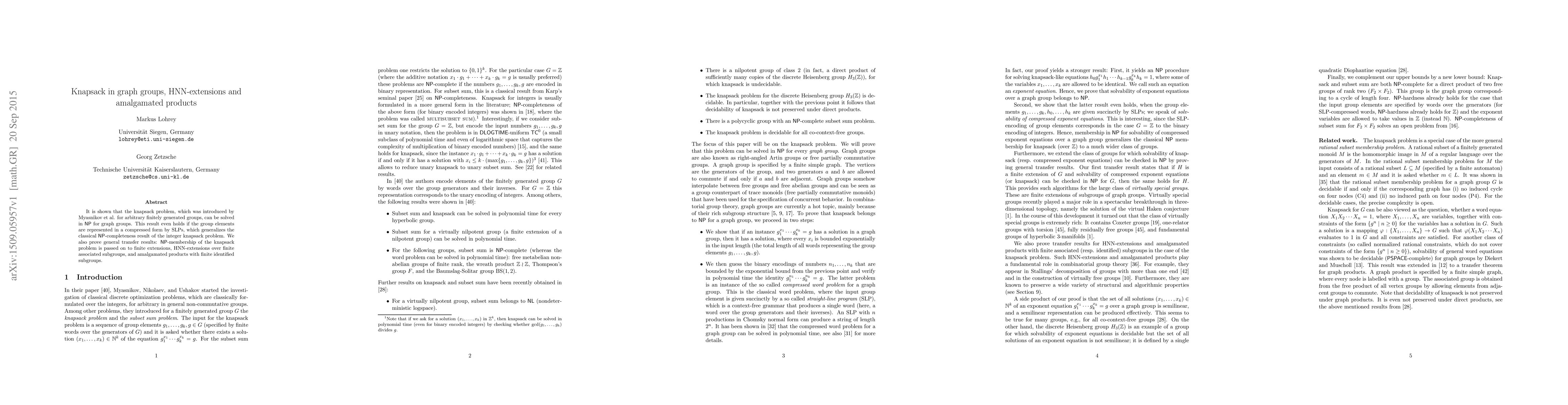This paper demonstrates that the knapsack problem can be solved in NP for graph groups, even when group elements are represented using compressed SLPs. It also extends this NP-membership to finite extensions, HNN-extensions, and amalgamated products with finite subgroups.