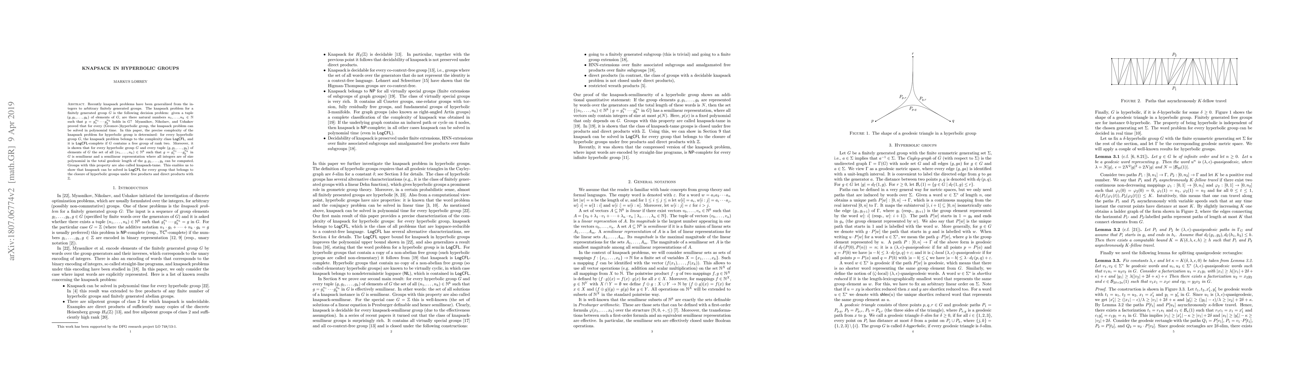 This paper determines the precise complexity of the knapsack problem for hyperbolic groups, showing it belongs to the complexity class $\mathsf{LogCFL}$ and is $\mathsf{LogCFL}$-complete if the group contains a free group of rank two. It also proves that solutions to the knapsack problem form semilinear sets.