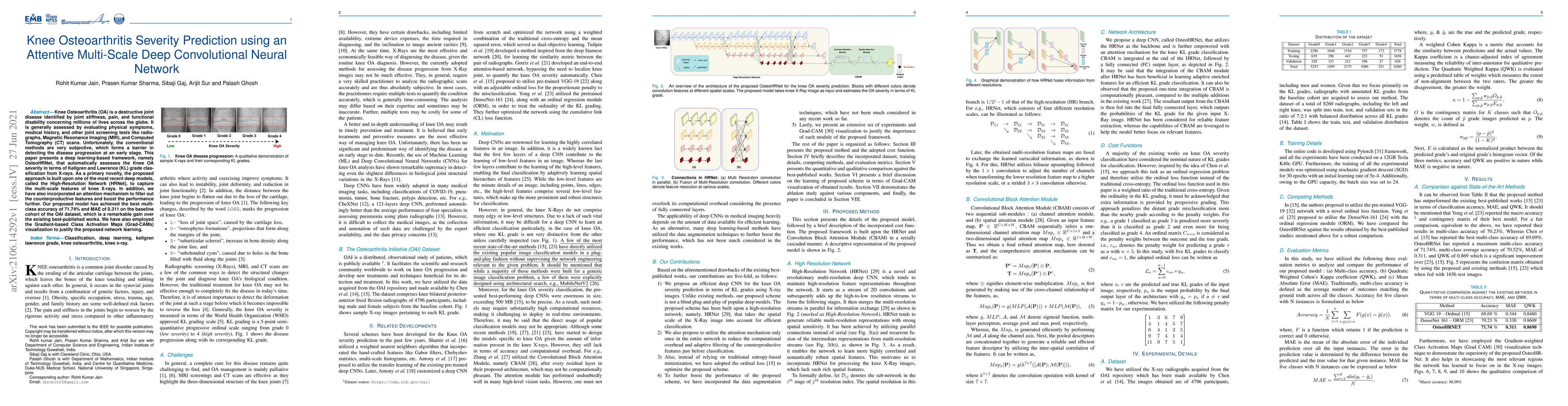 This paper introduces OsteoHRNet, a deep learning framework using an attentive multi-scale High-Resolution Network (HRNet) to predict Knee Osteoarthritis severity from X-rays, achieving 71.74% multiclass accuracy and a MAE of 0.311 on the OAI dataset. The attention mechanism enhances feature extraction, outperforming existing methods.
