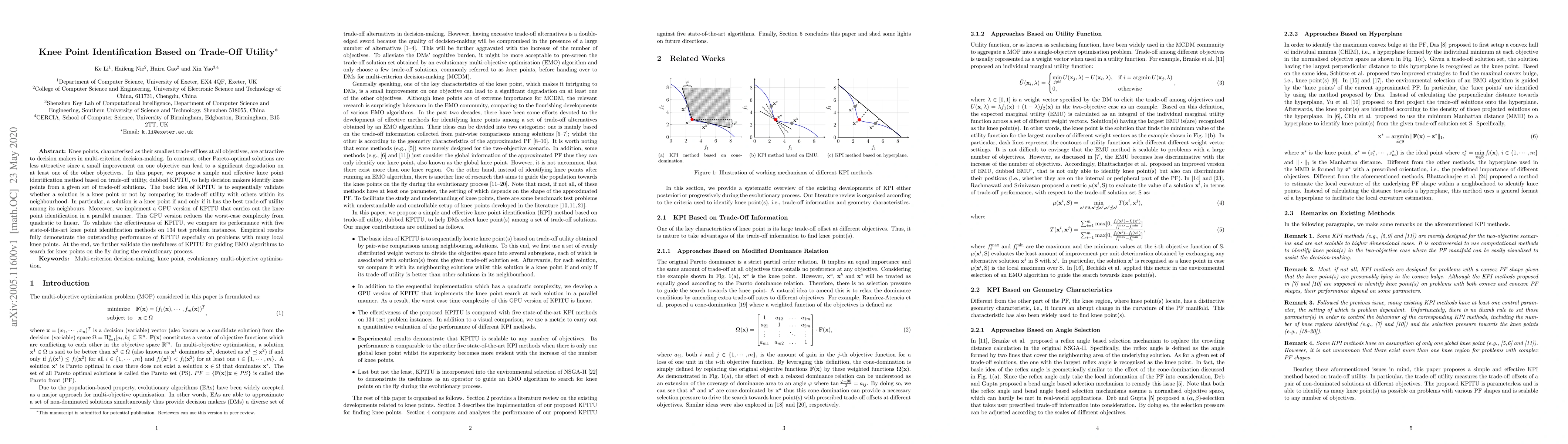 A new method called KPITU identifies knee points in multi-criterion decision-making by comparing trade-off utilities with neighbors, offering improved performance over existing methods, especially on problems with many local knee points.