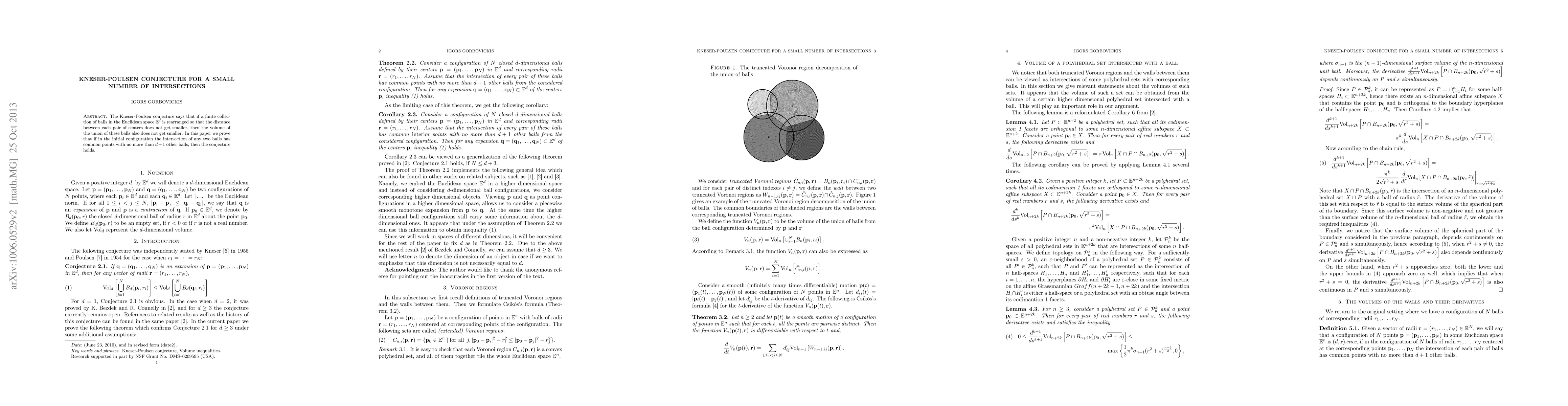 The Kneser-Poulsen conjecture posits that rearranging balls in Euclidean space without reducing inter-center distances maintains the volume of their union. This paper proves the conjecture holds when any two balls intersect with no more than d+1 other balls.