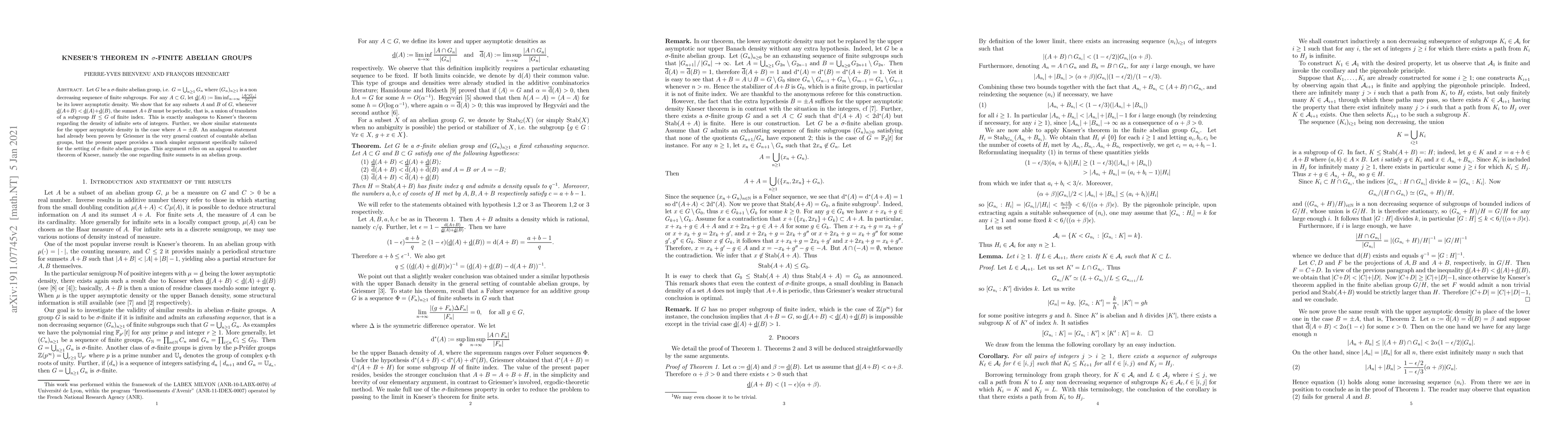 This paper proves a version of Kneser's theorem for $\sigma$-finite abelian groups, showing that if the lower asymptotic density of the sumset $A+B$ is less than the sum of the densities of $A$ and $B$, then $A+B$ is periodic. It also extends this result to upper asymptotic density when $A=\pm B$ and provides a simpler proof tailored for $\sigma$-finite abelian groups.