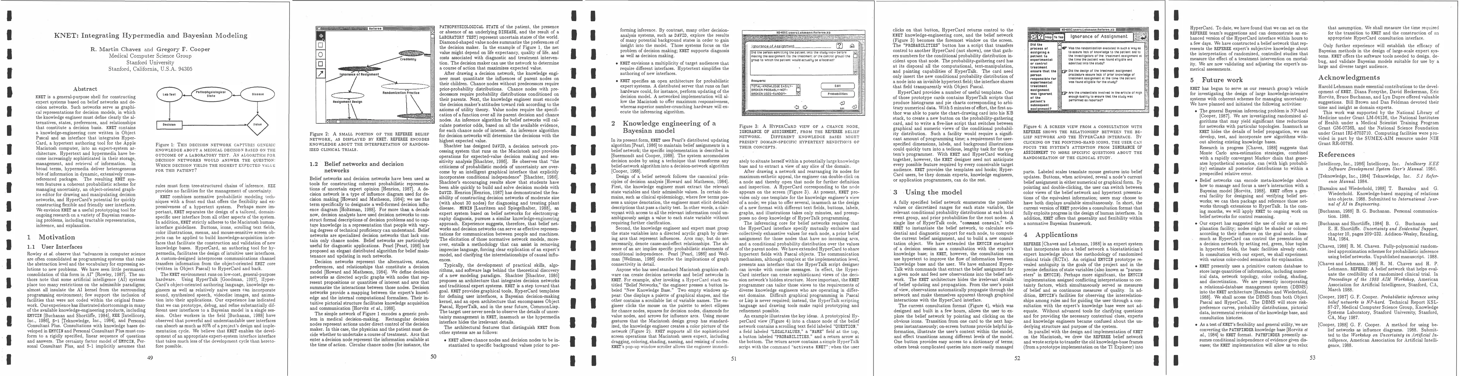 KNET integrates hypermedia with Bayesian modeling to construct expert systems, combining belief and decision networks with HyperCard for user interface design, aiming to manage uncertainty and facilitate flexible, probabilistic reasoning. The system is envisioned as a prototyping tool for Bayesian reasoning research.