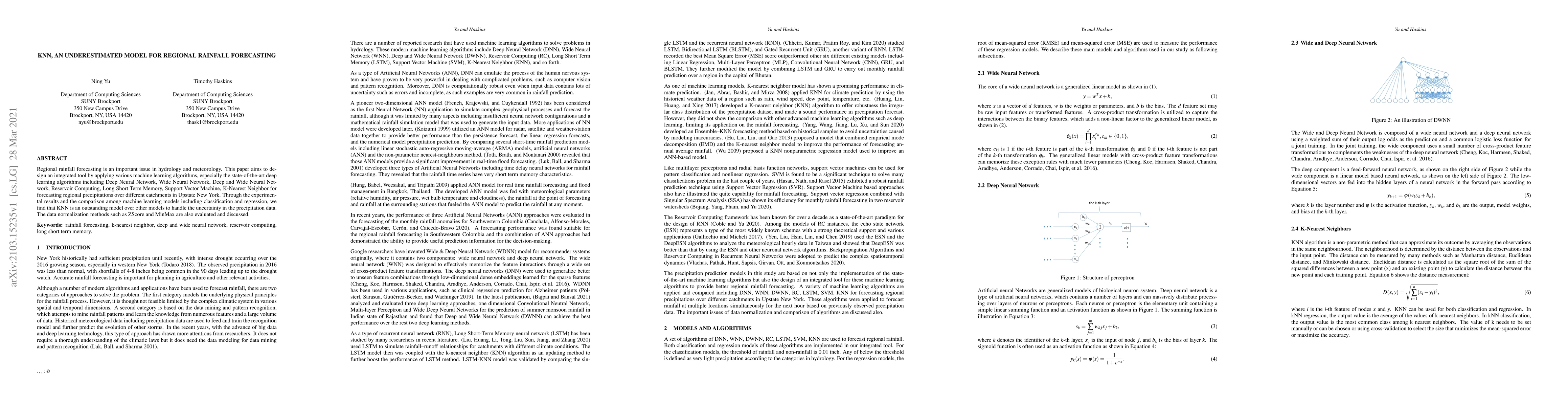 This paper explores various machine learning algorithms for regional rainfall forecasting in Upstate New York, finding that K-Nearest Neighbor (KNN) outperforms others in handling precipitation data uncertainties. Data normalization methods like ZScore and MinMax are also evaluated.