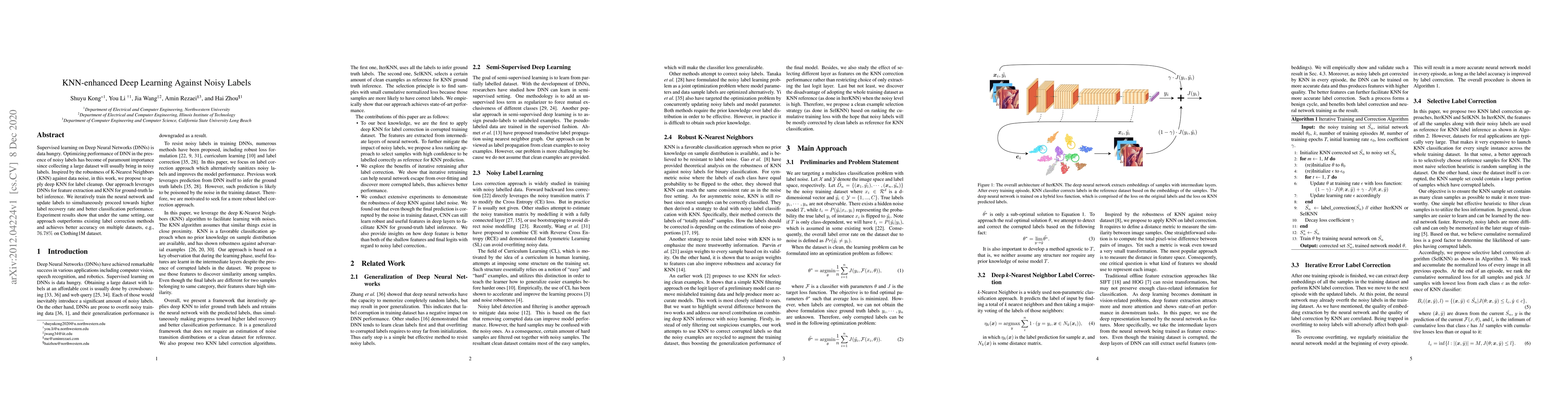 This paper proposes a method combining deep learning with K-Nearest Neighbors (KNN) to improve the performance of Deep Neural Networks (DNNs) under noisy labels. The approach uses DNNs for feature extraction and KNN for label inference, iteratively refining both labels and network training, resulting in superior accuracy compared to existing methods, achieving 76.78% on the Clothing1M dataset.