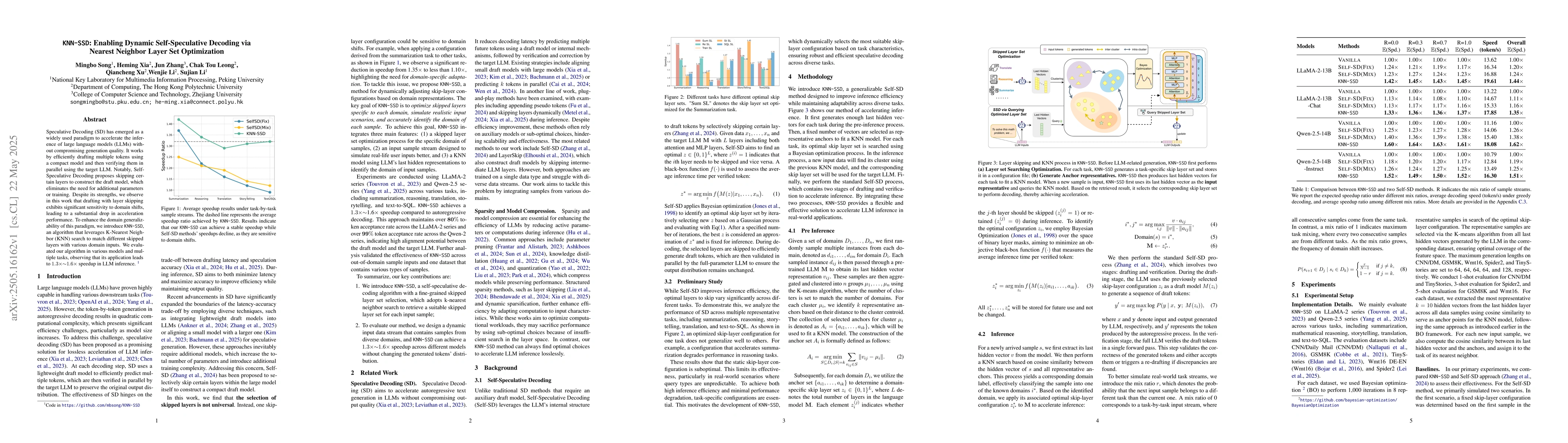 KNN-SSD enhances speculative decoding by using K-Nearest Neighbor search to match skipped layers with domain inputs, resulting in a 1.3x-1.6x speedup in LLM inference.