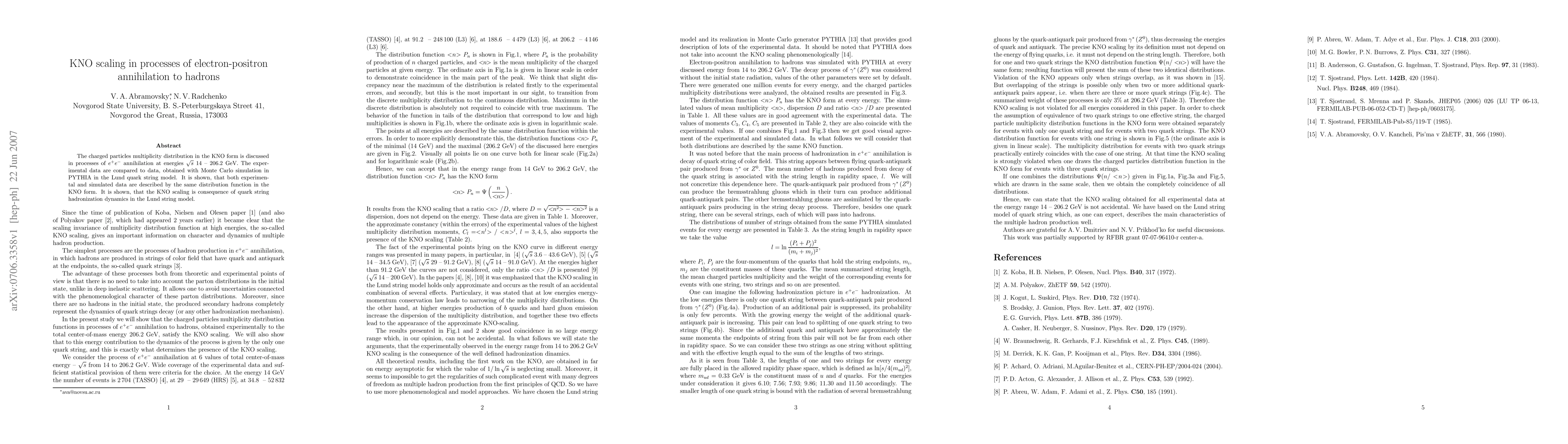 This paper investigates the charged particles multiplicity distribution in electron-positron annihilation processes at energies from 14 to 206.2 GeV, showing that both experimental and simulated data conform to the KNO scaling form. The study concludes that KNO scaling arises from quark string hadronization dynamics in the Lund quark string model.