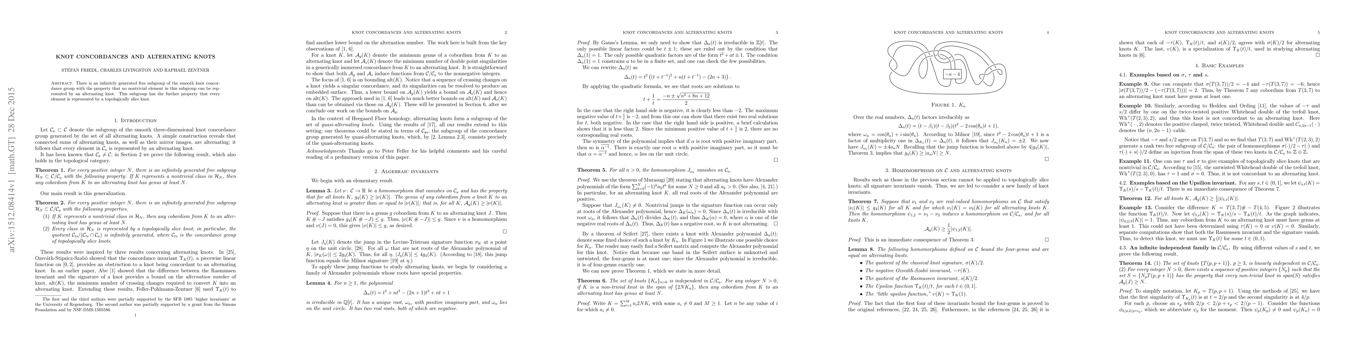 There is an infinitely generated free subgroup of the smooth knot concordance group with the property that no nontrivial element in this subgroup can be represented by an alternating knot. This subgroup has the further property that every element is represented by a topologically slice knot.