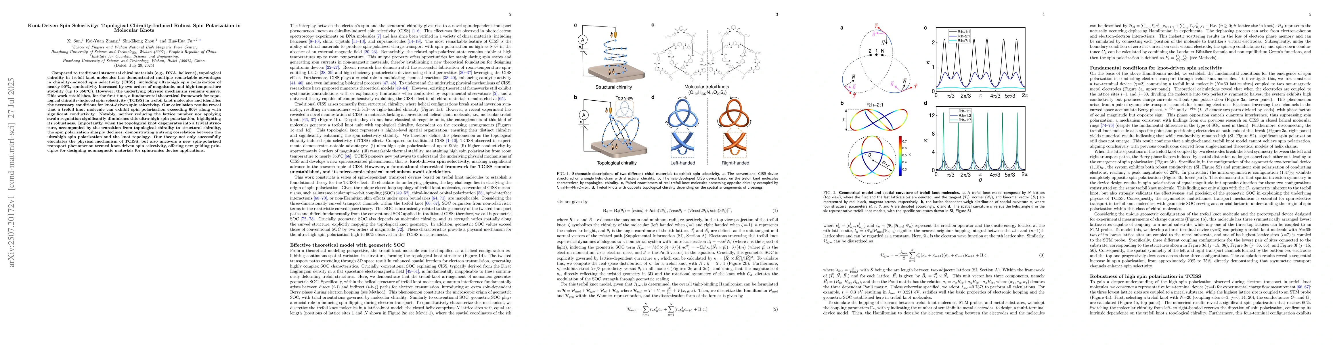Compared to traditional structural chiral materials (e.g., DNA, helicene), topological chirality in trefoil knot molecules has demonstrated multiple remarkable advantages in chirality-induced spin selectivity (CISS), including ultra-high spin polarization of nearly 90%, conductivity increased by two orders of magnitude, and high-temperature stability (up to 350$^{\circ}$C). However, the underlying physical mechanism remains elusive. This work establishes, for the first time, a fundamental theoretical framework for topological chirality-induced spin selectivity (TCISS) in trefoil knot molecules and identifies the necessary conditions for knot-driven spin selectivity. Our calculation results reveal that a trefoil knot molecule can exhibit spin polarization exceeding 60% along with significant conductivity. Notably, neither reducing the lattice number nor applying strain regulation significantly diminishes this ultra-high spin polarization, highlighting its robustness. Importantly, when the topological knot degenerates into a trivial structure, accompanied by the transition from topological chirality to structural chirality, the spin polarization sharply declines, demonstrating a strong correlation between the ultrahigh spin polarization and the knot topology. Our theory not only successfully elucidates the physical mechanism of TCISS, but also uncovers a new spin-polarized transport phenomenon termed knot-driven spin selectivity, offering new guiding principles for designing nonmagnetic materials for spintronics device applications.